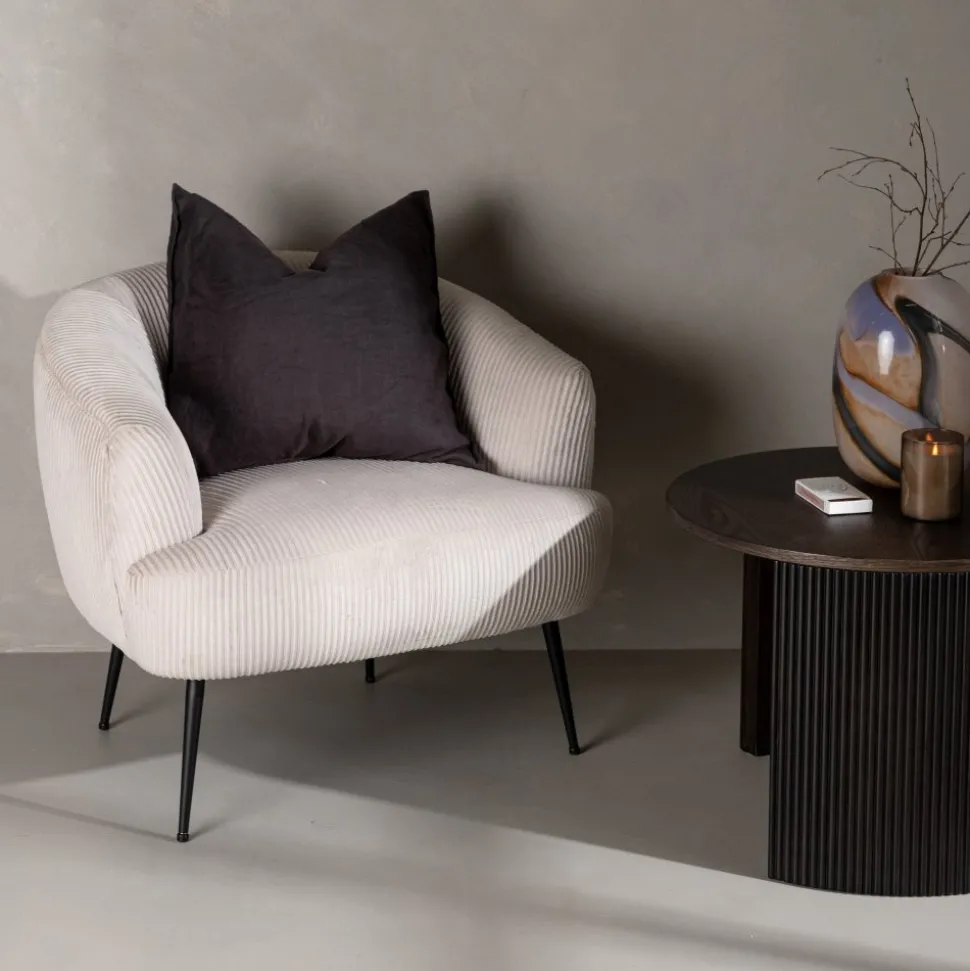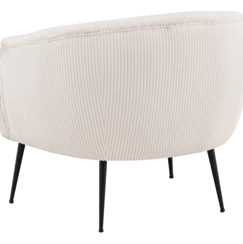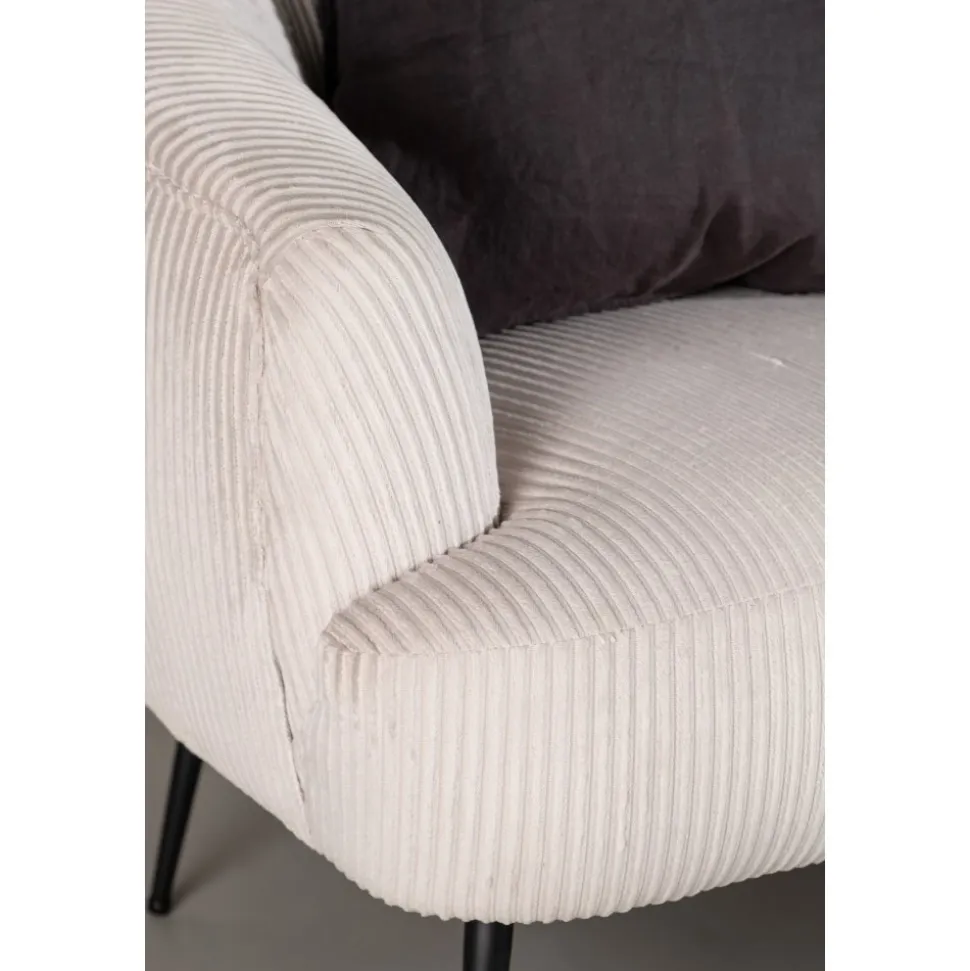 Låt modern design möta 50-tals nostalgin med den här trendiga manchsterfåtöljen. Klädd i lent ljust manchestertyg i beige kulör som ger fåtöljen ett härligt lyster. Den böjda och mjuka designen, de smala, höga benen och generösa sittdjupet skapar en luftig och inbjudande känsla. En otroligt genomtänkt helhetsdesign helt enkelt med klädd baksida som möjliggör att placera fåtöljen mitt i rummet. Möblera ensam som stilikon eller tillsammans med soffgruppen och njut av avkopplade stunder! Levereras omonterad.