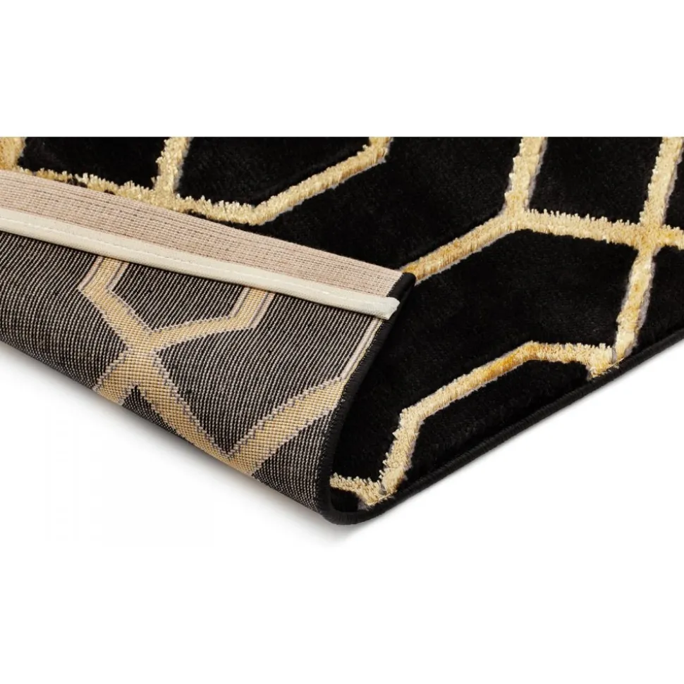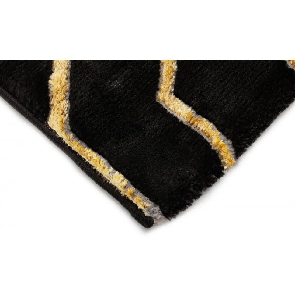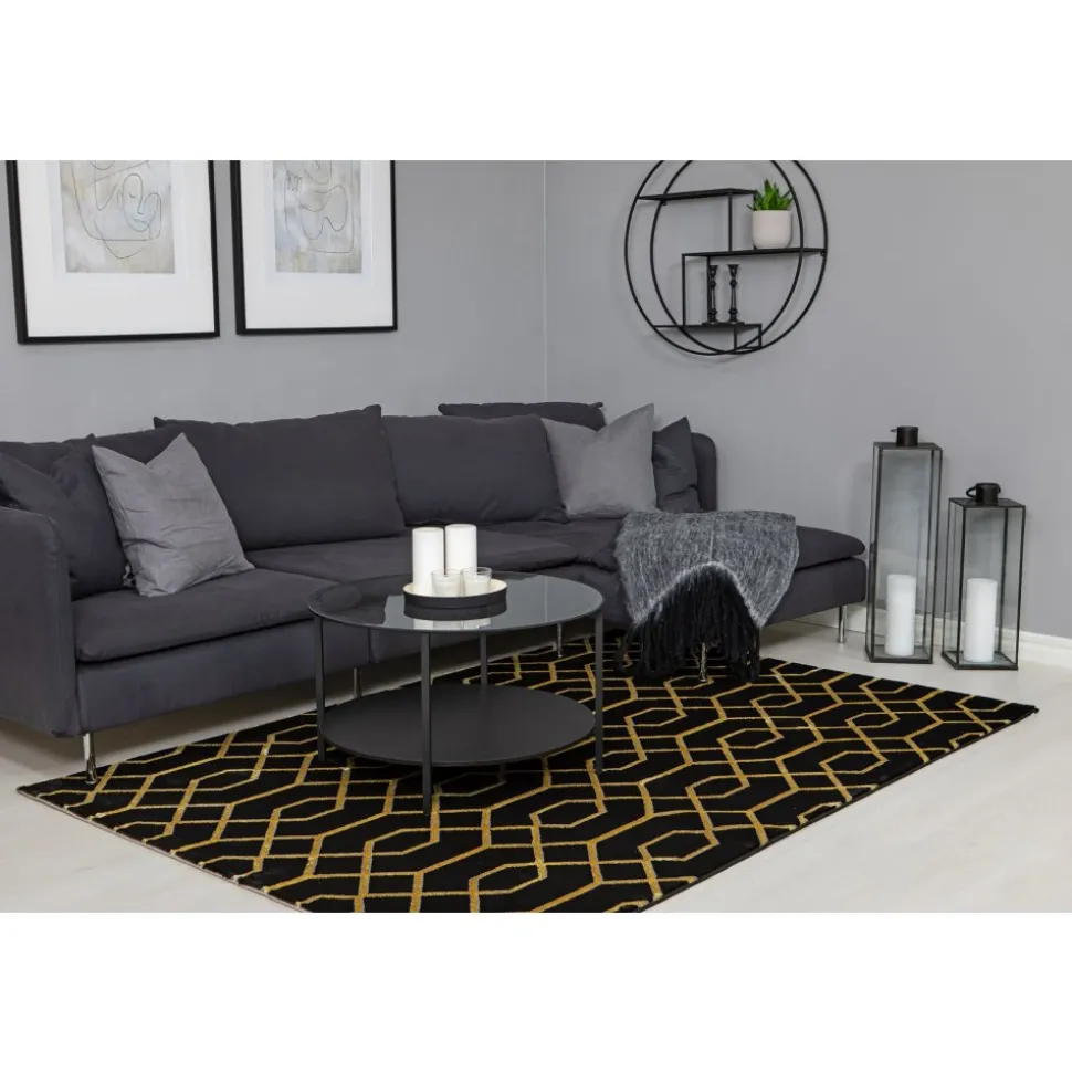 Mattan har ett modernt geometriskt mönster i guldfärg. Garnet i mönstret är tillverkat i Polyester vilket ger ett härligt lyster när ljuset faller på.