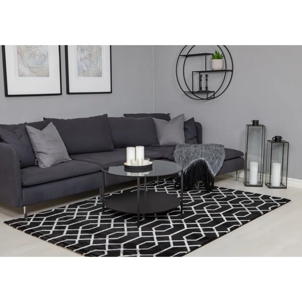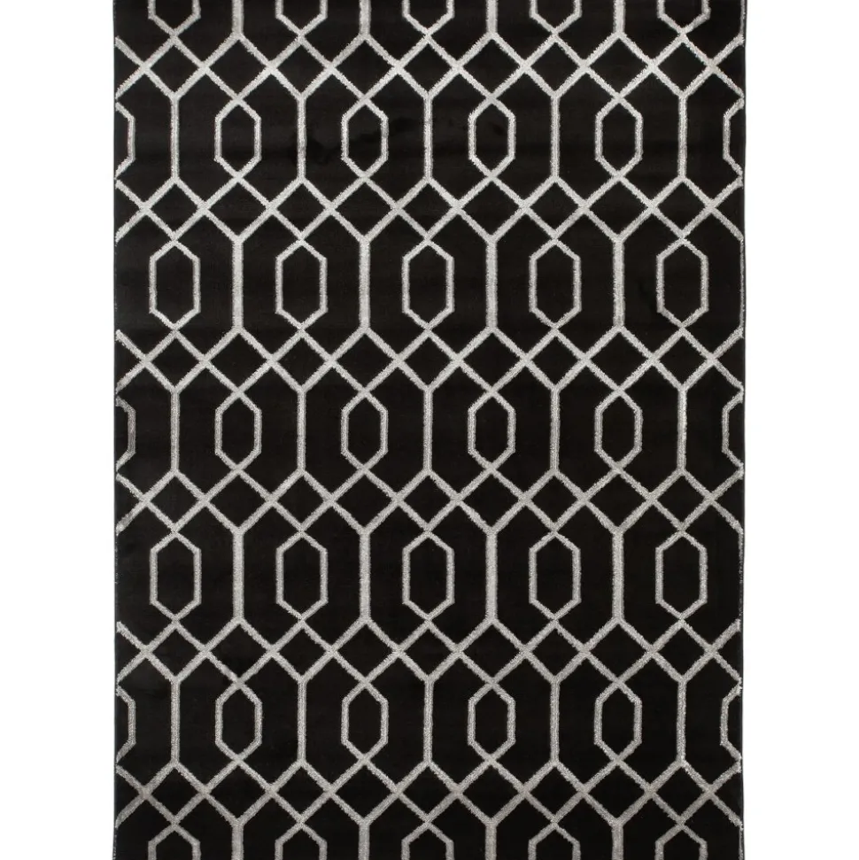Mattan har ett modernt geometriskt mönster i silver. Garnet i mönstret är tillverkat i Polyester vilket ger ett härligt lyster när ljuset faller på.