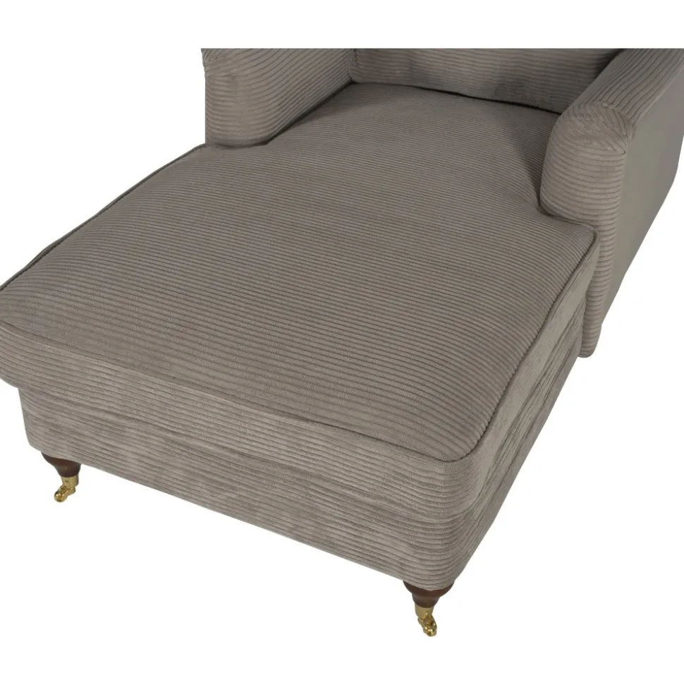 Alla våra Howardfåtöljer har en gedigen konstruktion för god kvalitet och mycket lång livslängd. Howard Watford har mässingsfärgade hjul på frambenen med tillhörande skyddande koppar. Klädseln är i manchestertyg och sitt- och ryggdynor är löstagbara.