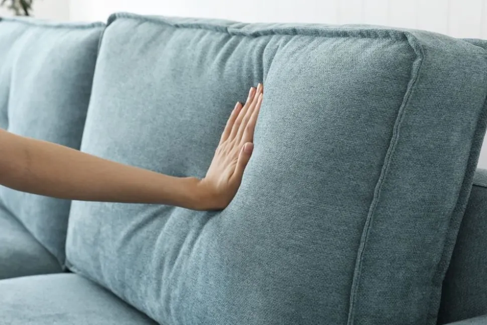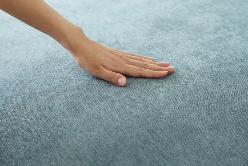 Classic är en stor och härlig med god komfort och snygg design. Soffa klädd i ljusblått tyg med underrede i trä.