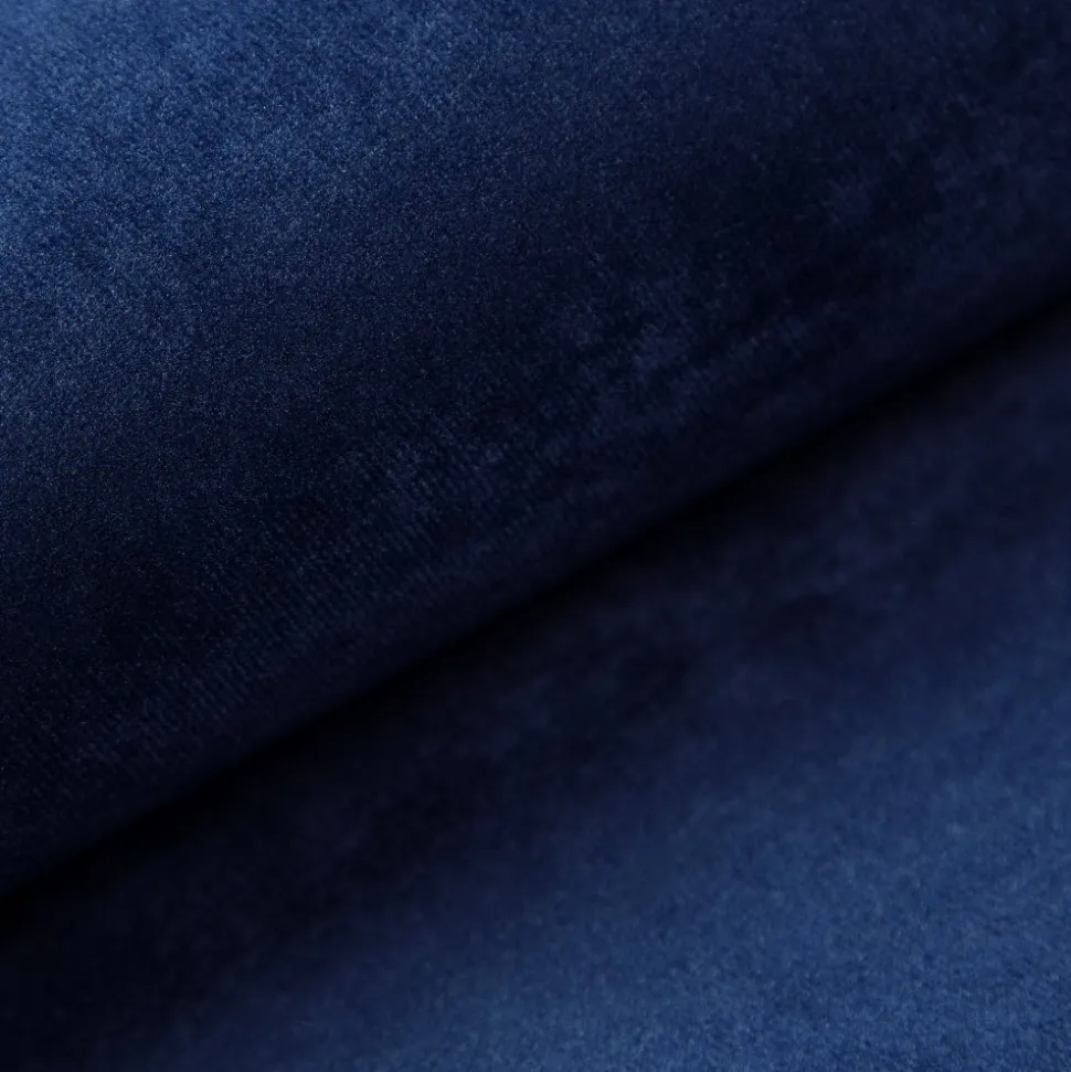 Stommen vilar på svarta, runda ben som ger en stabil och balanserad bas till soffans mjuka former. Klädseln i en djup mörkblå nyans ger möbeln en exklusiv och ombonad känsla som passar både i moderna och mer klassiska miljöer.