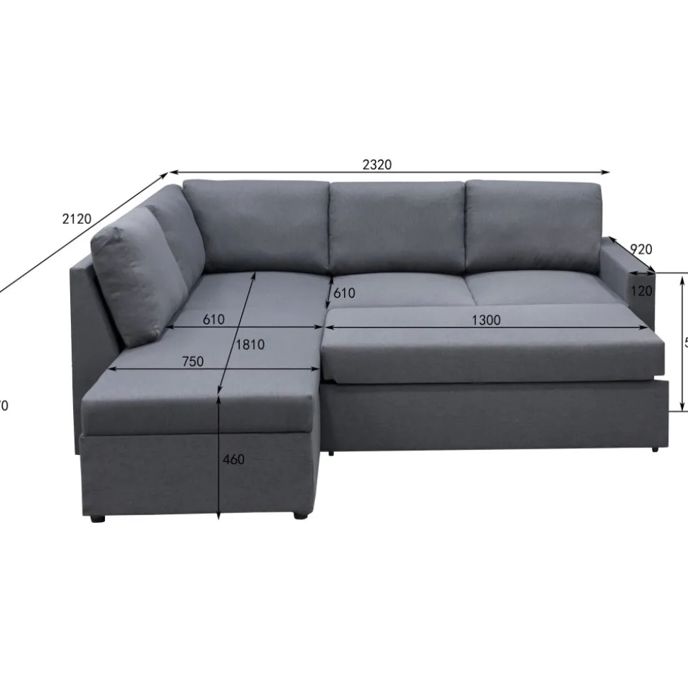 Bäddsoffan monteras av kund och kan monteras med divandelen på antingen höger eller vänster sida.