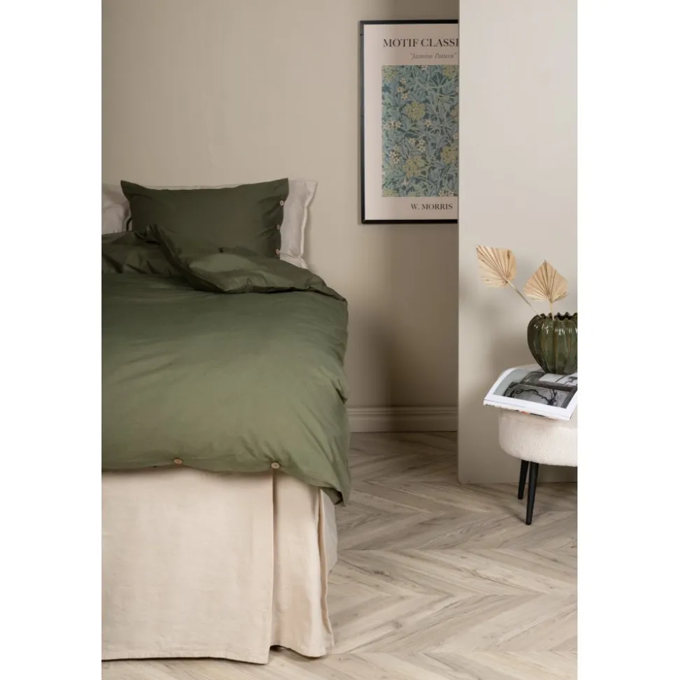 Påslakanset i bomull. Smidiga tryckknappar med vilka man enkelt försluter sängkläderna.