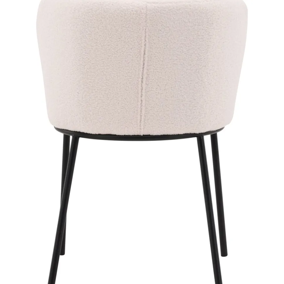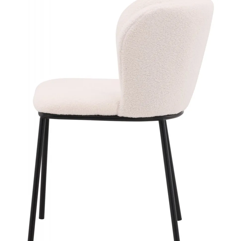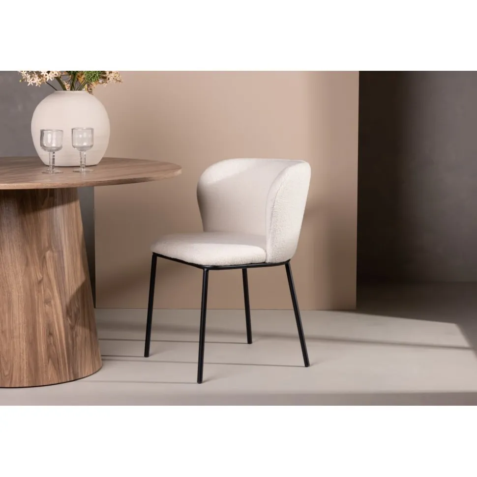Stolen har en följsam, helklädd sits i vitt boucletyg, som inte bara är bekväm att sitta på, utan även ger en mjuk och inbjudande känsla. De minimalistiska stolsbenen i svart metall ger en elegant kontrast till den vita sitsen och skapar en stilren och modern look. Den stilrena utformningen gör att Edina Matstol står sig över tid. Dess tidlösa design passar perfekt i både klassiska och moderna inredningar. Den bekväma sitsen är utformad för att ge stöd under långvarig sittning, vilket gör den idealisk för både middagssällskap och avkoppling.
