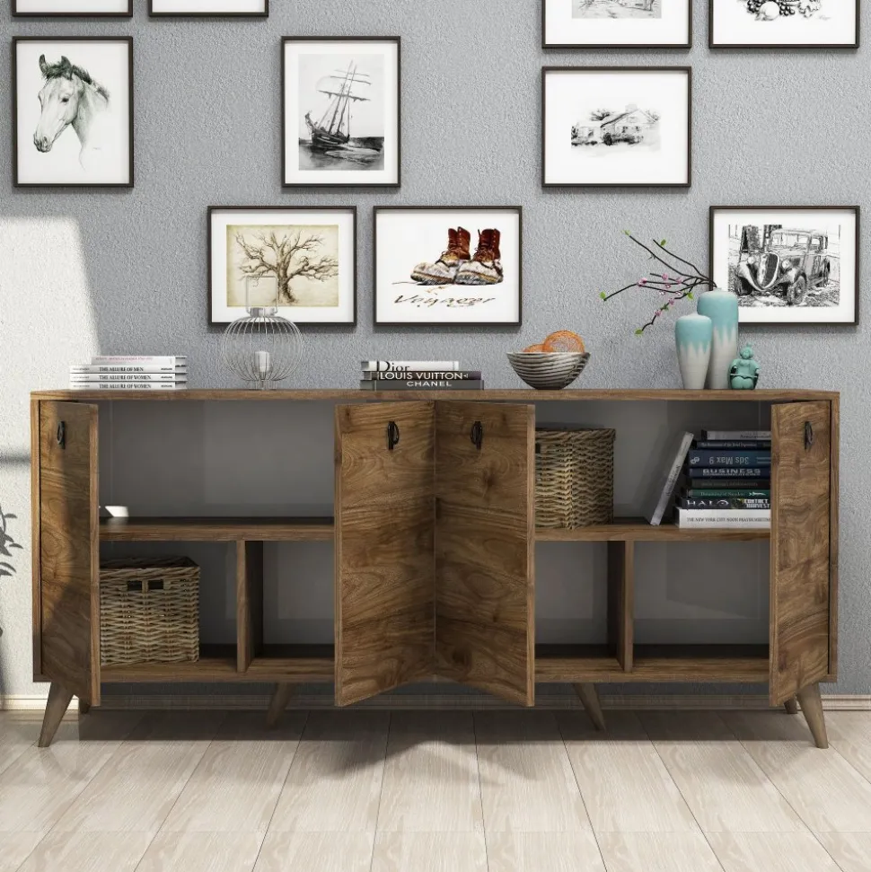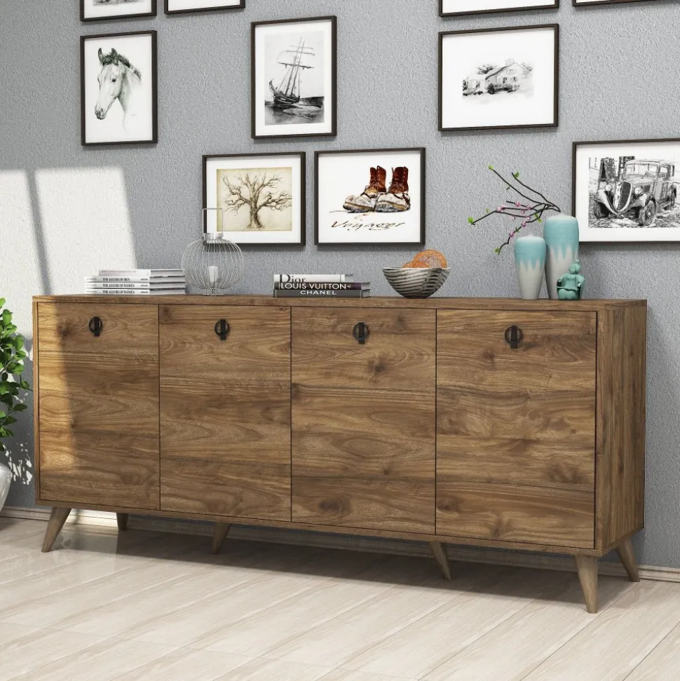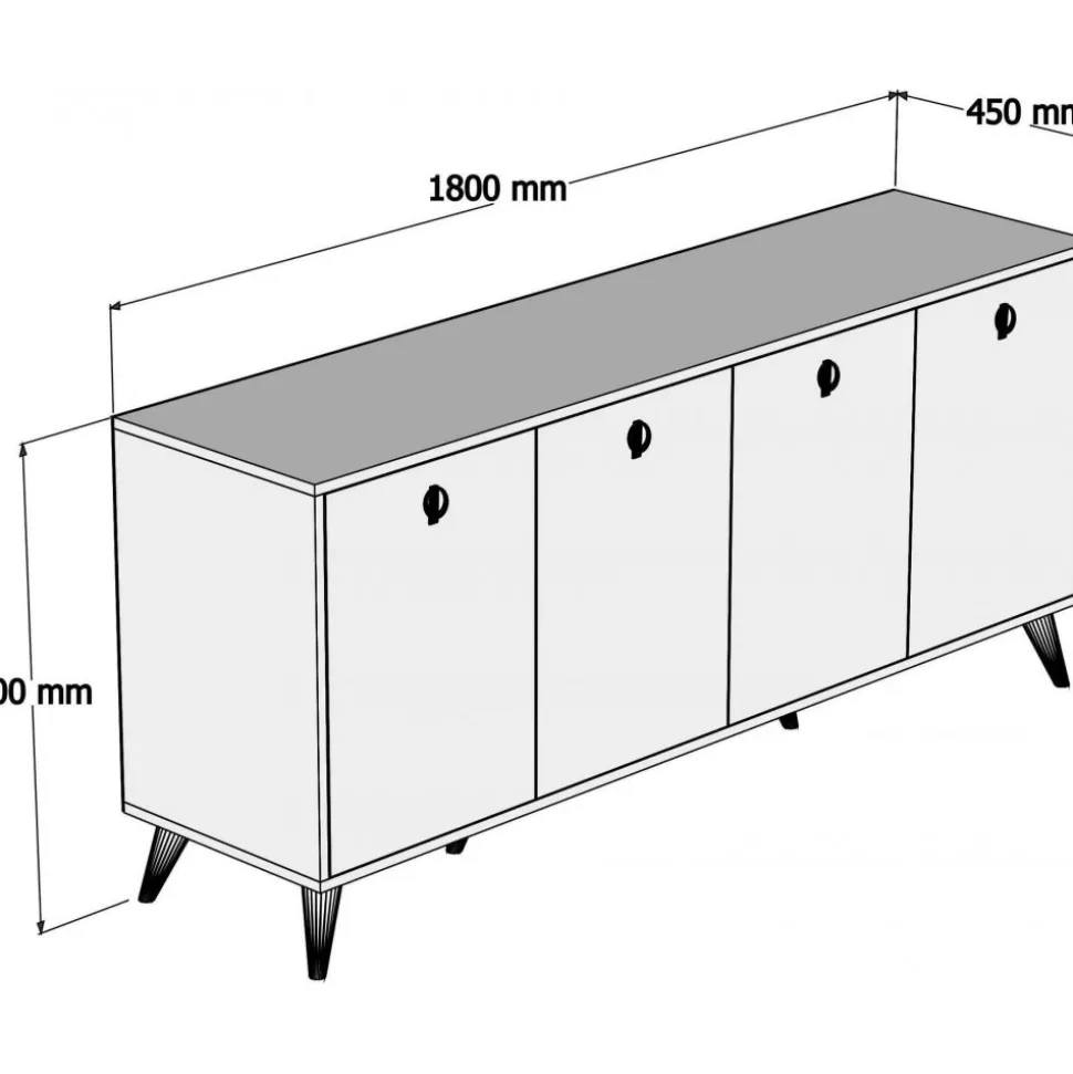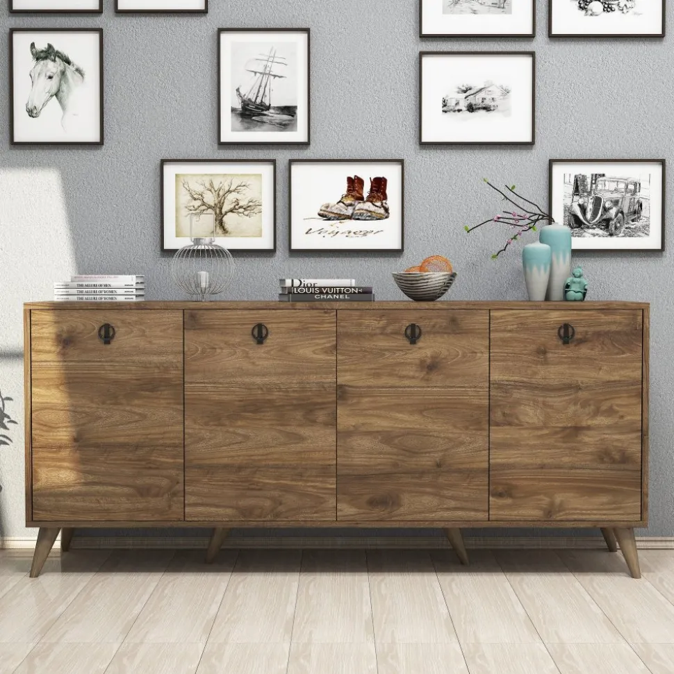 Skänk av trä och metall.