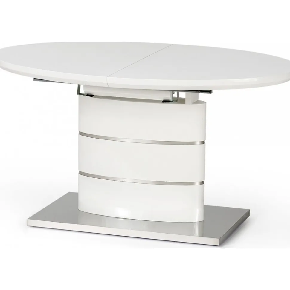 Ett elegant med en modern design. Underredet är tillverkat i metall och bordsskivan i vitlackerad MFP (premium träskiva). Bordet kan lätt förlängas från 140 cm till 180 cm, perfekt när man har ett lite större sällskap.