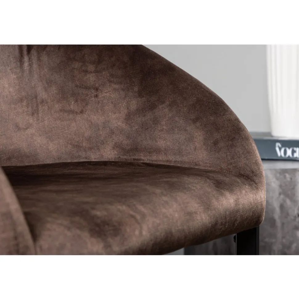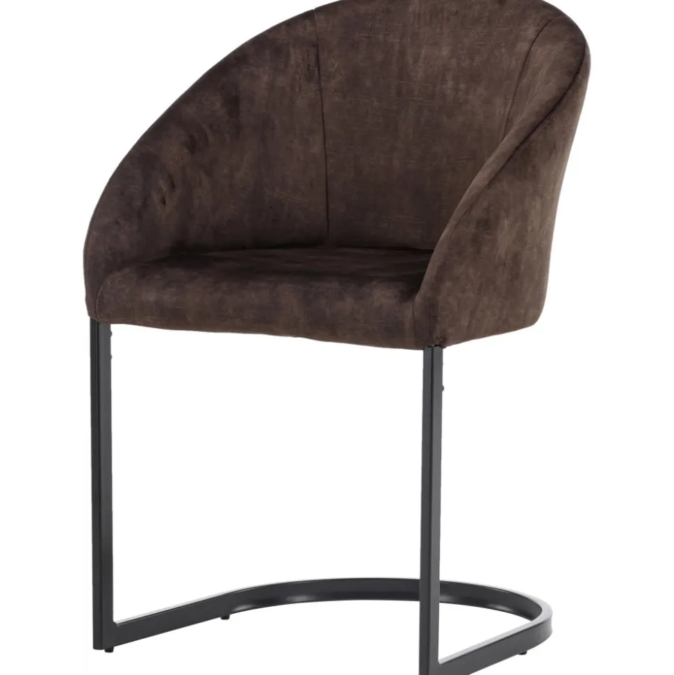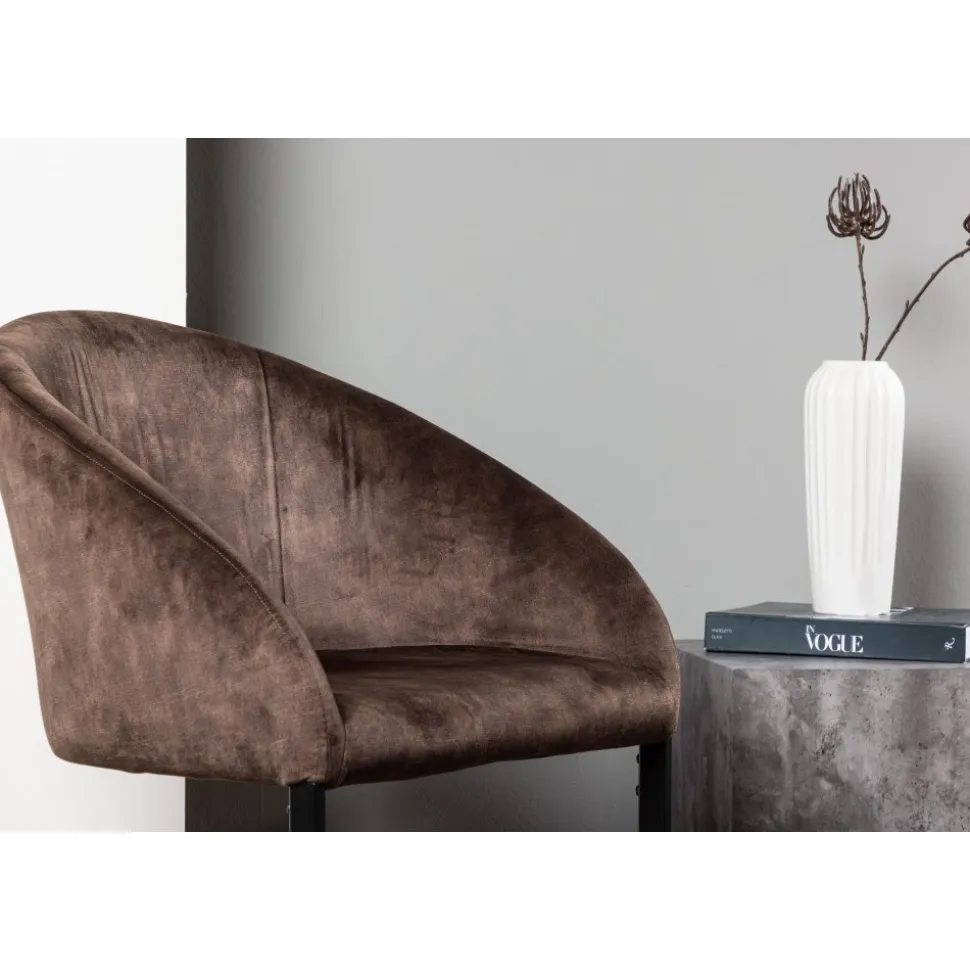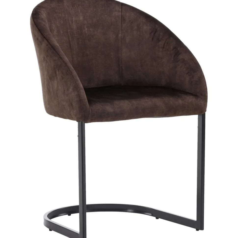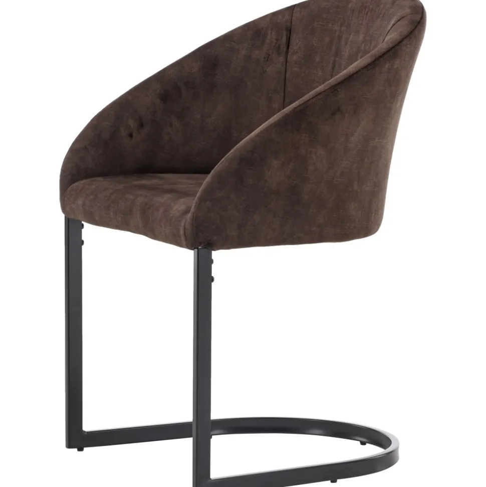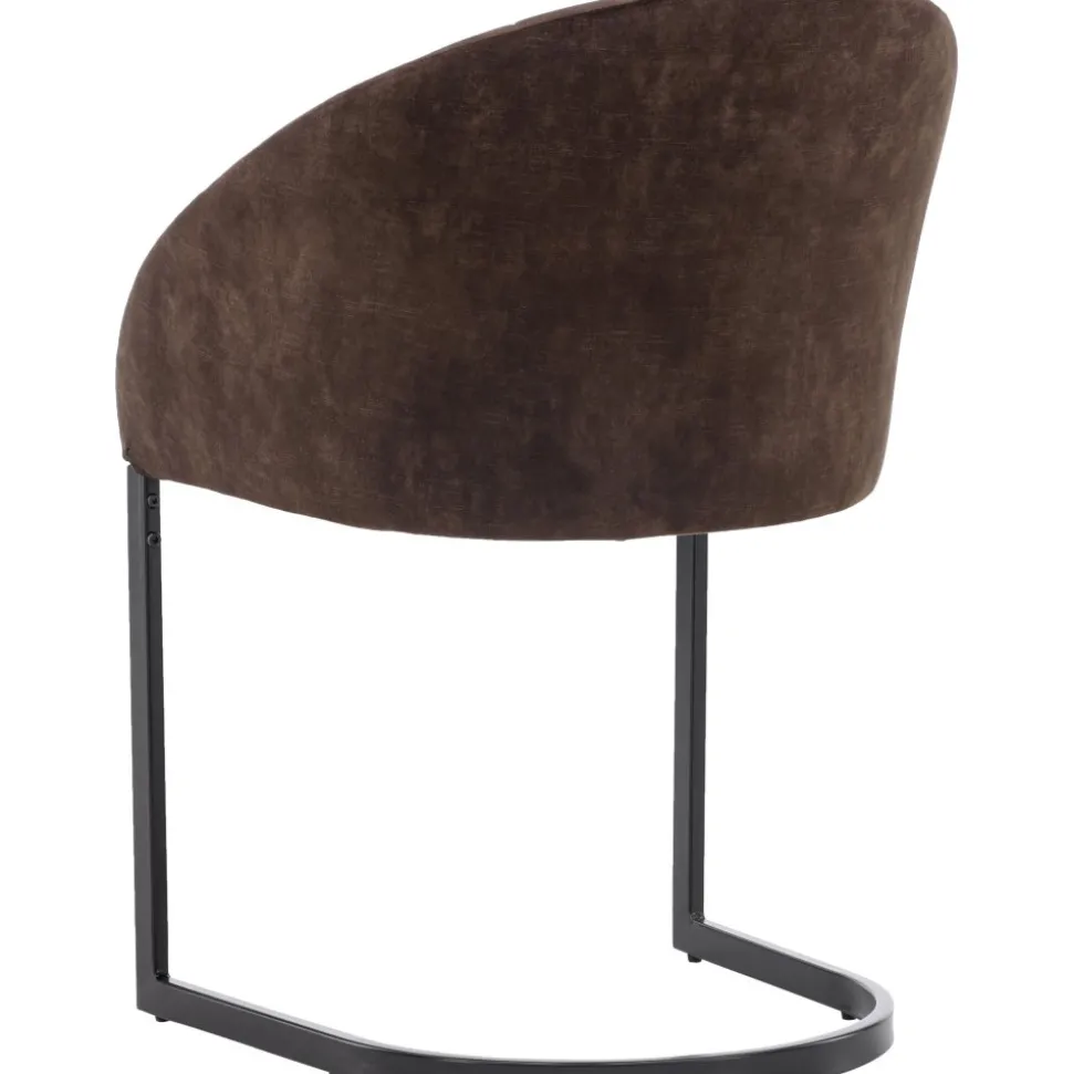 Matstol med ett nostalgiskt uttryck som är lika stilren som bekväm och skapar ett lyxigt blickfång kring ditt matbord! Stolen har en helklädd sits med rundat ryggstöd i brunt tyg och dekorativ, minimalistisk benstomme i matt brunt stål. Den moderna designen imponerar och är helt i linje med trenderna. Sitt bekvämt och njut av måltiderna i denna eleganta matstol!
