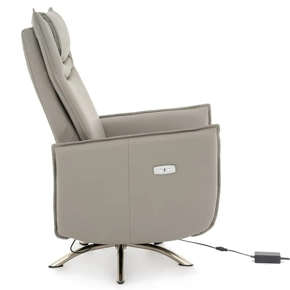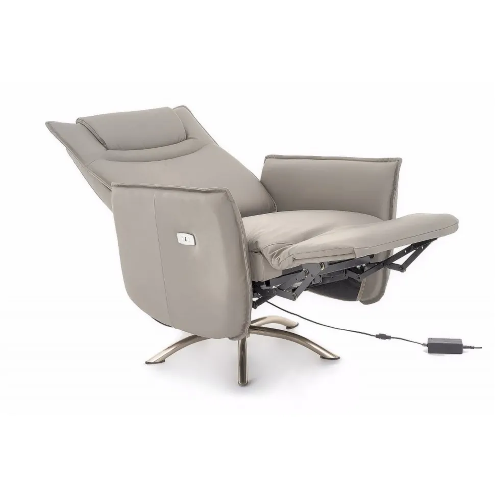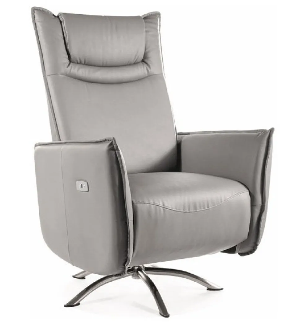 Modern och komfortabel eldriven . Klädd i ett läderliknande grått PU. Elektrisk enkel inställning till favorit position med hjälp av de två knapparna på sidan av fåtöljen.
