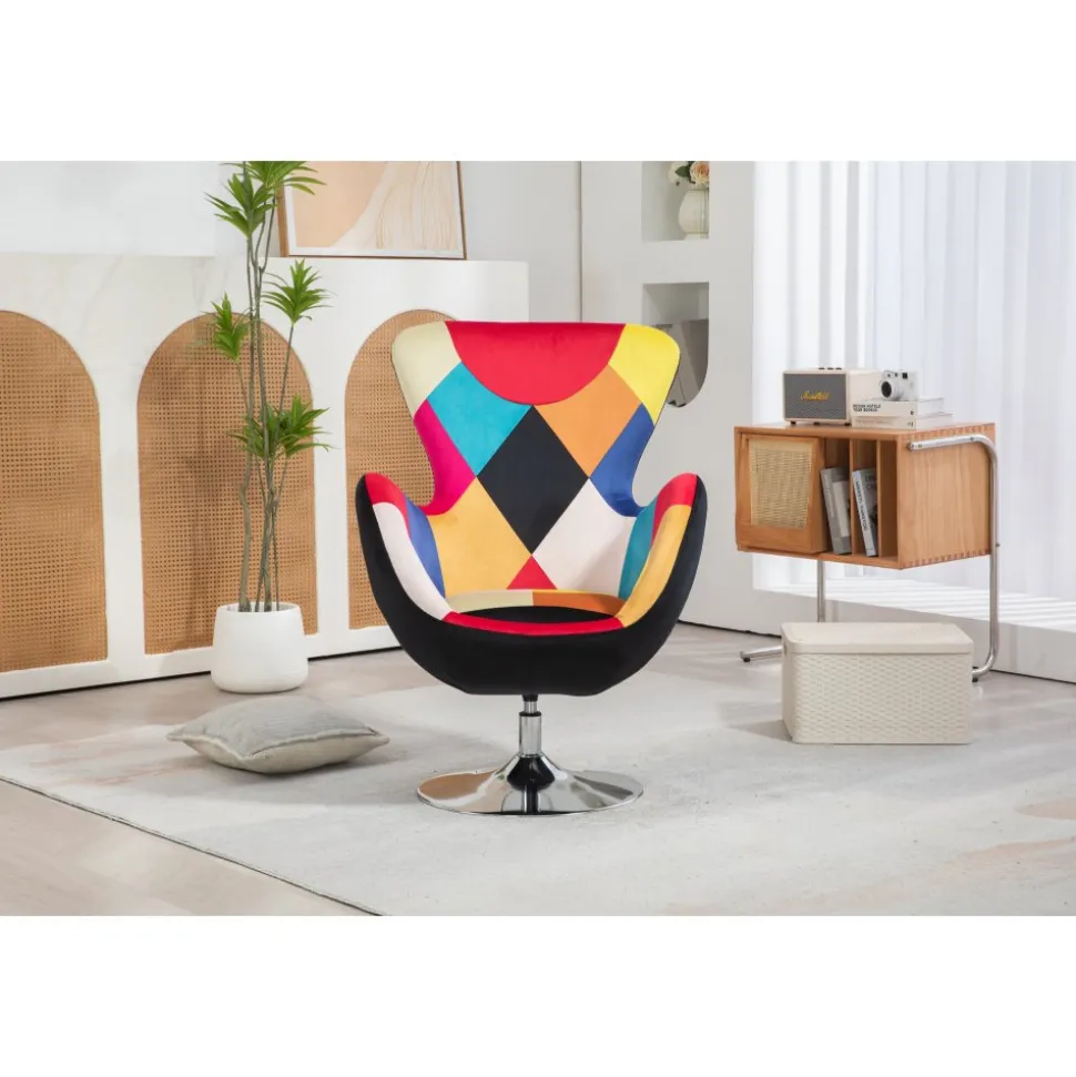 Bekväm med klädd sits i multifärgat tyg som kombinerar stil med hög sittkomfort. Den mjuka stoppningen gör fåtöljen perfekt för långa stunder av avkoppling, oavsett om du vill läsa en bok, titta på TV eller njuta av en kopp kaffe.