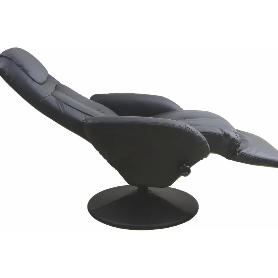 Berit är en klädd i mjukt och slitstarkt svart konstläder, framtagen för att ge hög komfort och praktisk funktion. Fåtöljen har en fällbar funktion för både rygg och fotstöd, vilket gör det enkelt att hitta en avslappnad position. Tack vare låsningsfunktionen stannar fåtöljen kvar i den position du valt, för en trygg och bekväm stund.