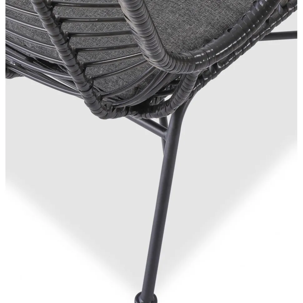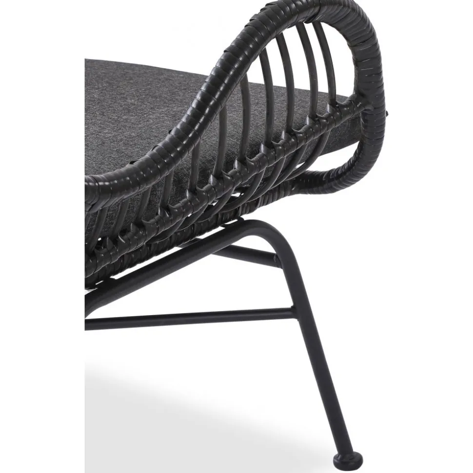 En stilfull och bekväm som kombinerar klassisk design med hållbara material. Tillverkad av slitstark med ett stabilt underrede i stål och en mjukt klädd sits för extra komfort. Perfekt för både uteplatsen och inomhusmiljöer.