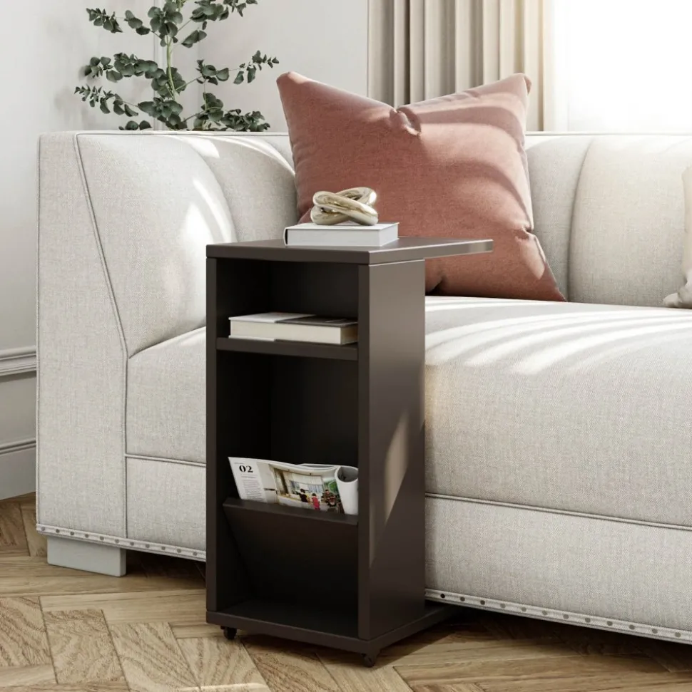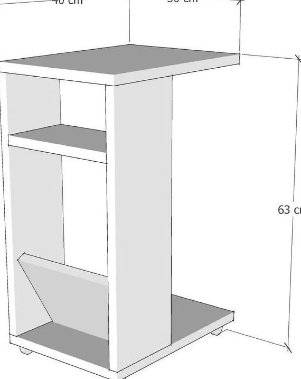 Sidobord av melaminbelagd spånskiva.