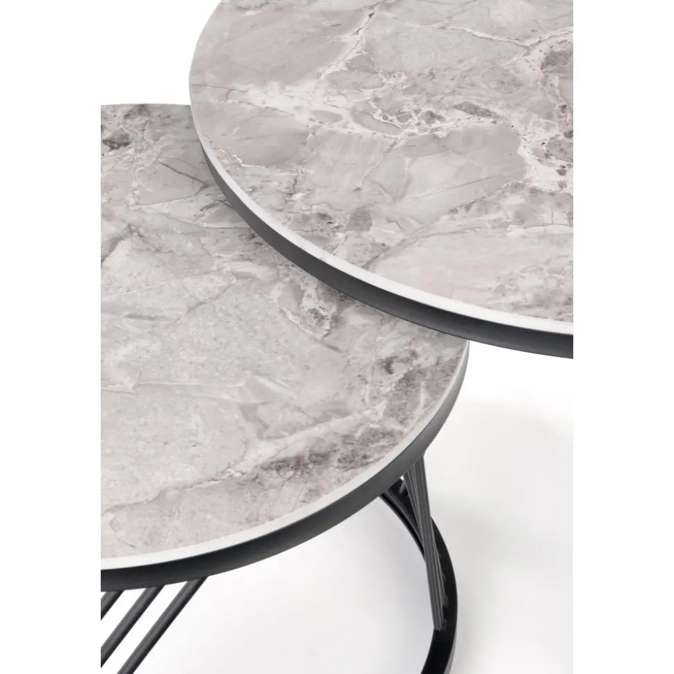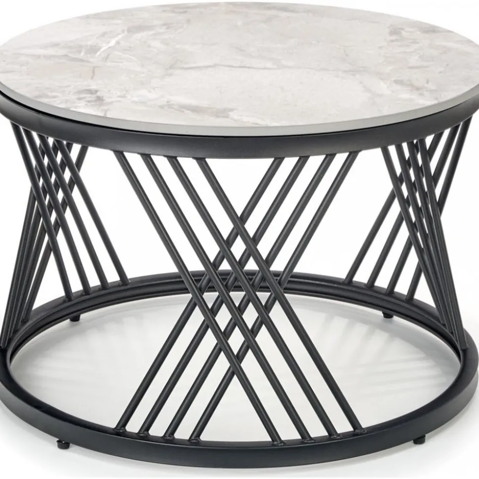 Soffbord med bordsskiva av keramik och underrede av pulverlackerad stål.