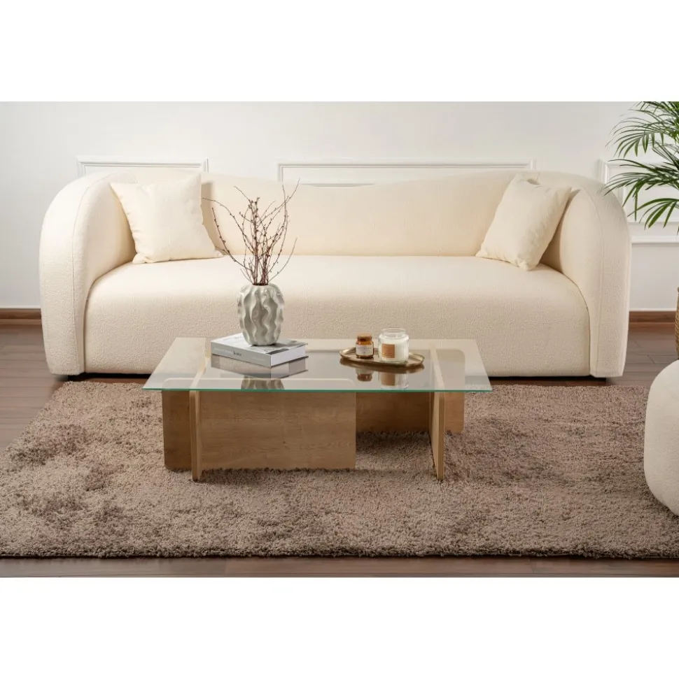 Vårt soffbord är designat med material av högsta kvalitet för att ge dig en möbel som kommer att hålla i många år framöver. Den härdade glasskivan är lätt att rengöra och underhålla, medan den melaminbelagda spånskivans ram ger en touch av modern stil till ditt utrymme.