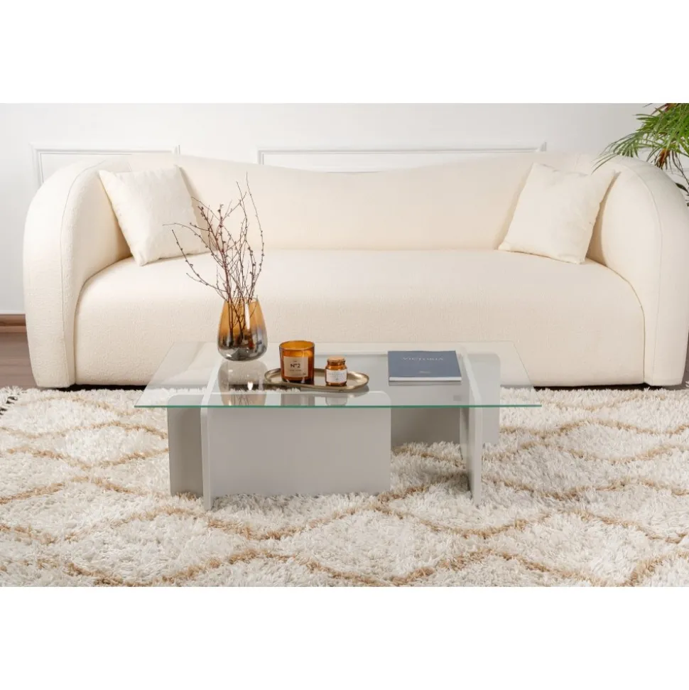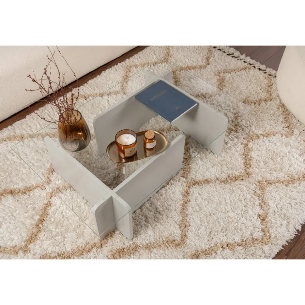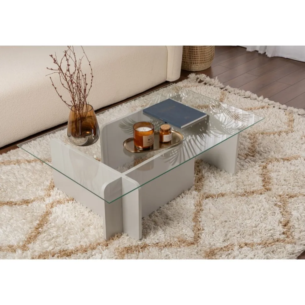 Lyft ditt med vårt fantastiska i grått. Detta soffbord är tillverkat av härdat glas och melaminbelagd spånskiva och utstrålar elegans och sofistikering.