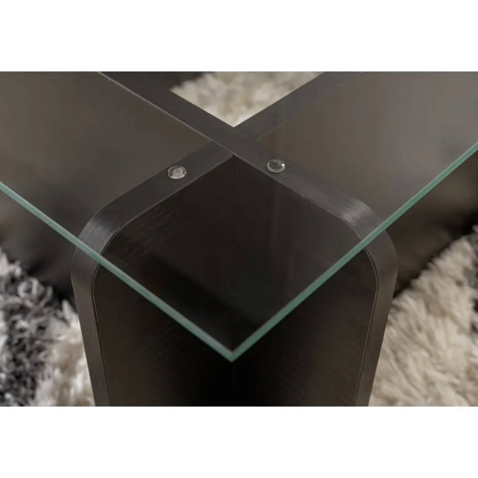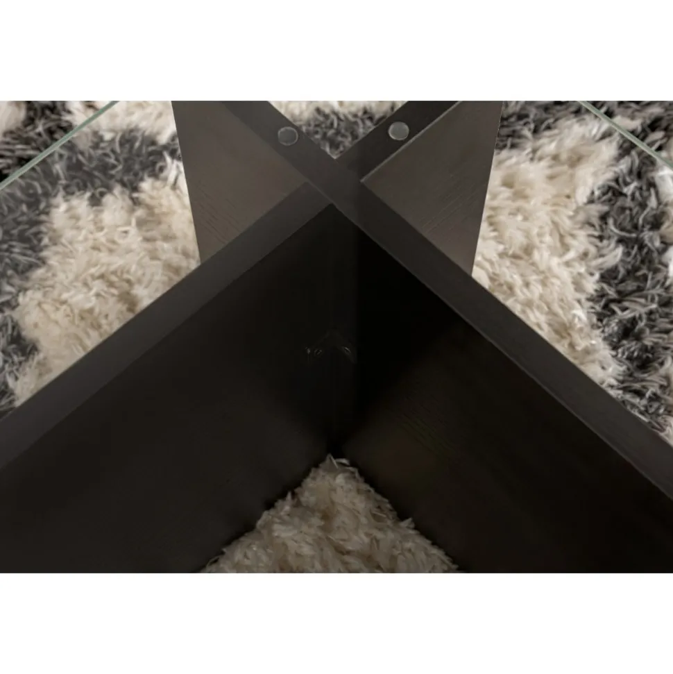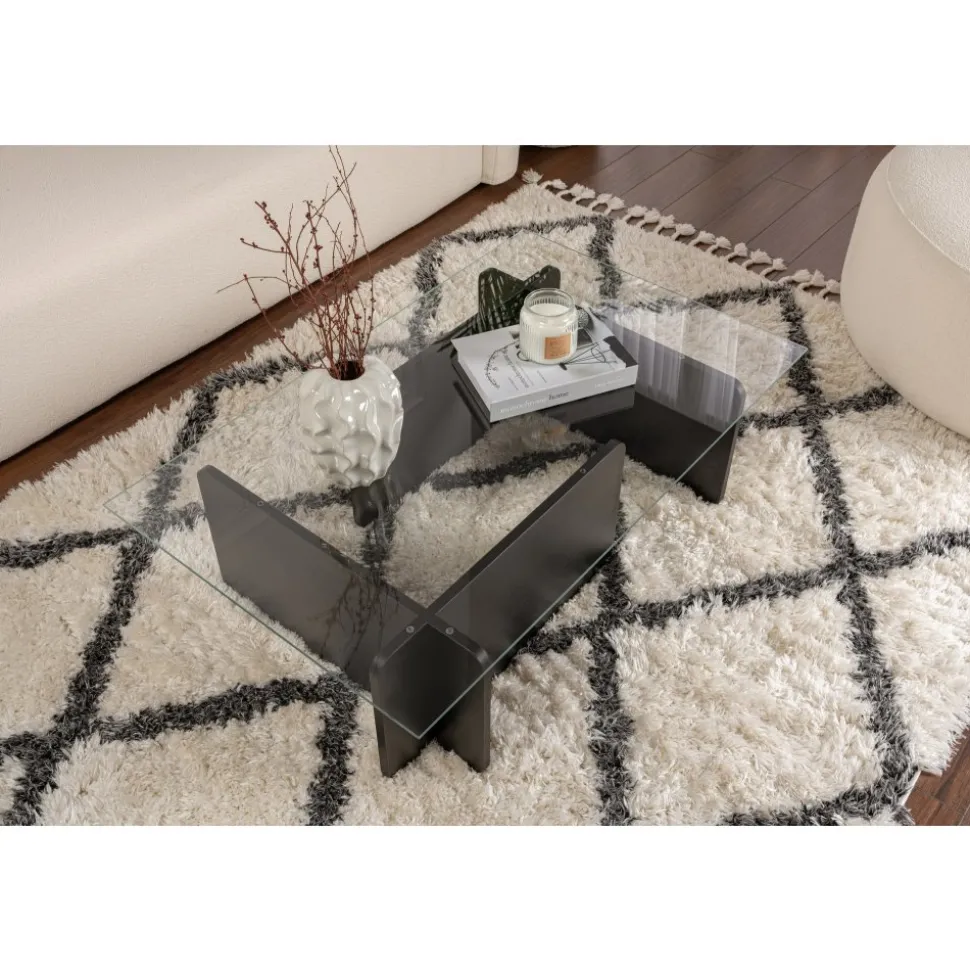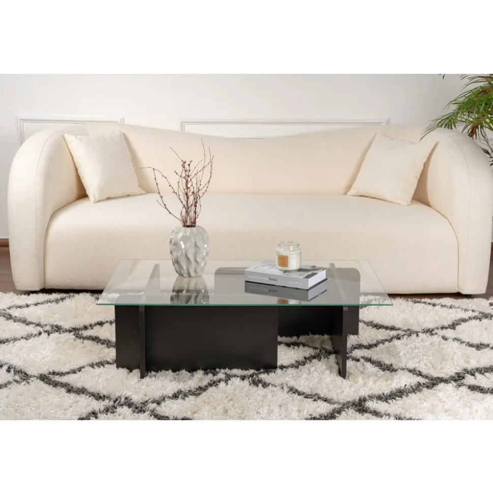 Tänk dig att komma hem efter en lång dag och koppla av framför det här vackra soffbordet, smutta på din favoritdrink medan du varvar ner. Den svarta kulören ger en touch av lyx till ditt utrymme, medan den 18 mm tjocka härdade glasskivan ger hållbarhet och stabilitet för alla dina soffbordsbehov.