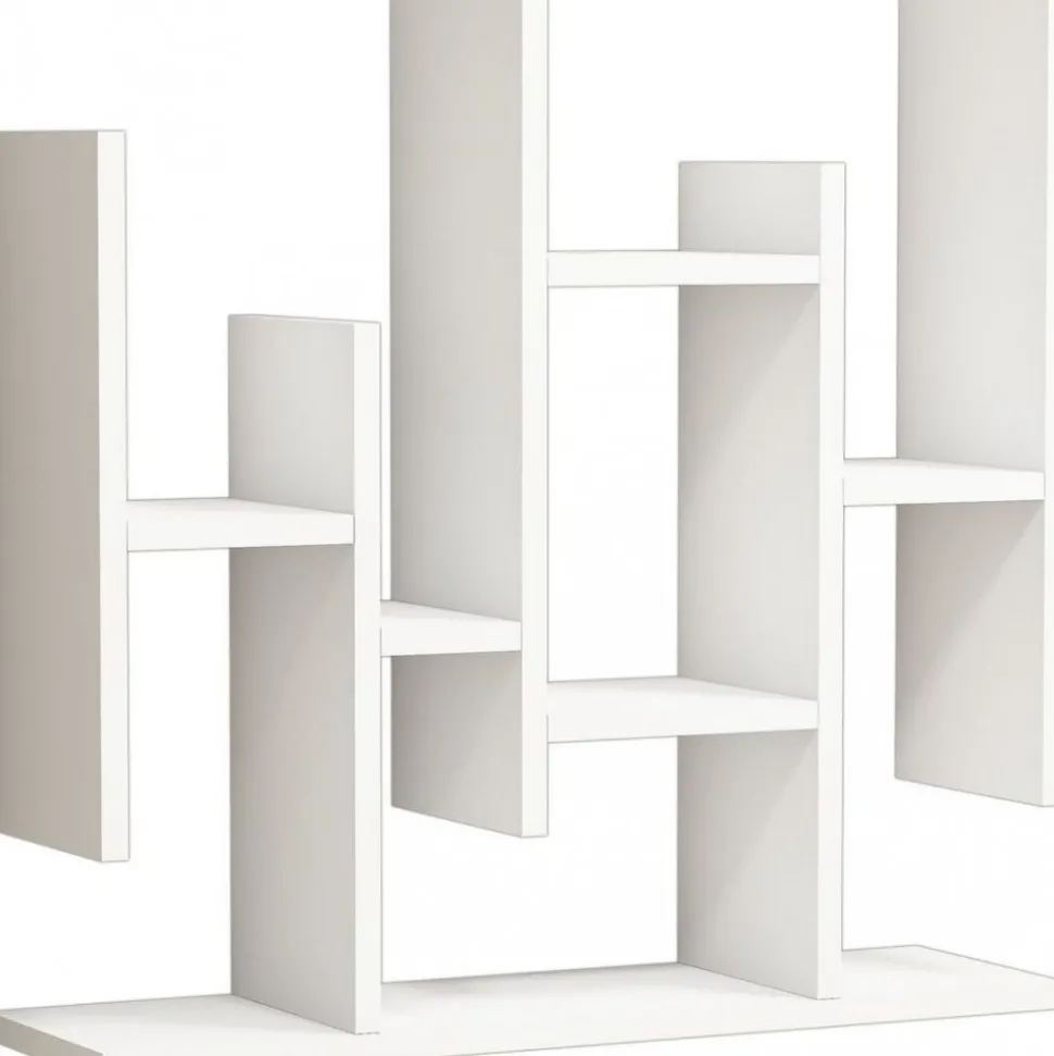Vägghylla av melaminbelagd spånskiva.