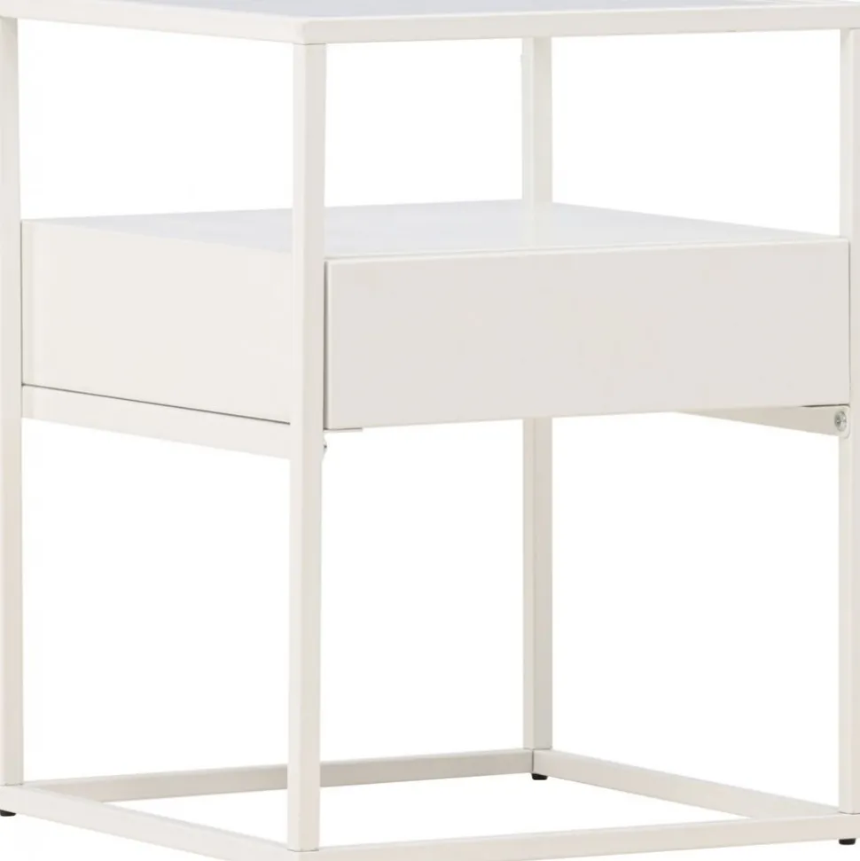 Rama in sängen med ett vackert vitt nattduksbord i glas och stål från vår serie Fortaleza! Det här vita sidobordet i nätt storlek ger inte bara en sofistikerad touch till din inredning utan reflekterar även din personliga stil och modemedvetenhet. Med en toppskiva i glas och en ramkonstruktion i vitt stål blir detta snabbt en favorit. Det här sidobordet är också utrustat med en diskret låda och hyllplan, vilket möjliggör både dold och synlig förvaring. Aldrig mer oordning – håll dina ägodelar organiserade och pryd med något vacker ljuslykta eller favoritbok för en personlig och hemtrevlig touch. Den smidiga storleken gör också att det går att använda till mycket. Placera som nattduksbord eller som ett sofistikerat i vardagsrummet – bara fantasin sätter gränser. Fortaleza sidobord finns även i en sotig svart färg om det passar just din inredningsstil bättre! Levereras omonterad.