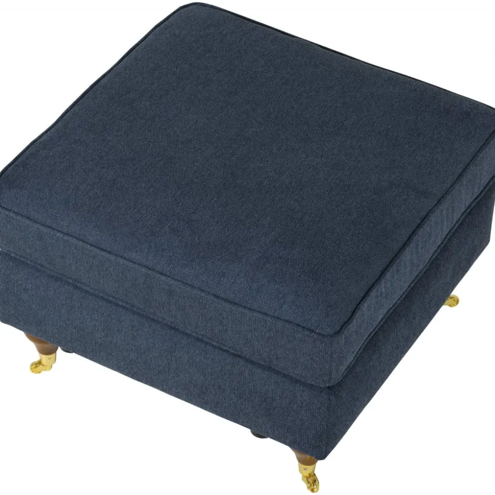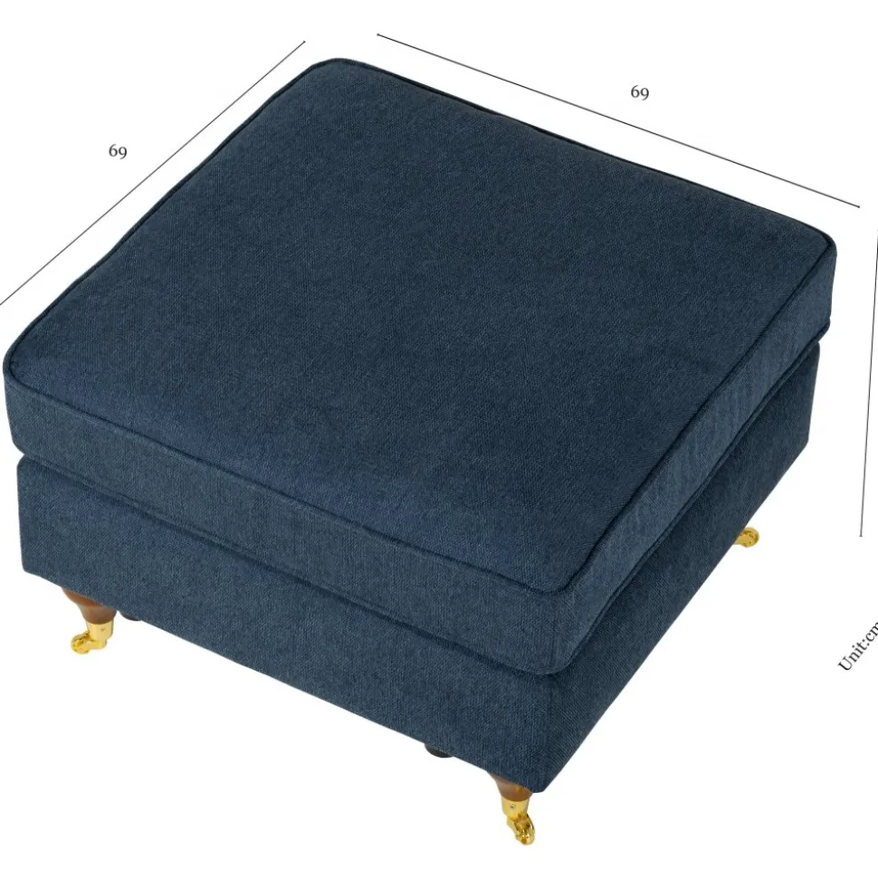 Fotpallen finns i en mörkblå och stilren klädsel som passar in alla hem.