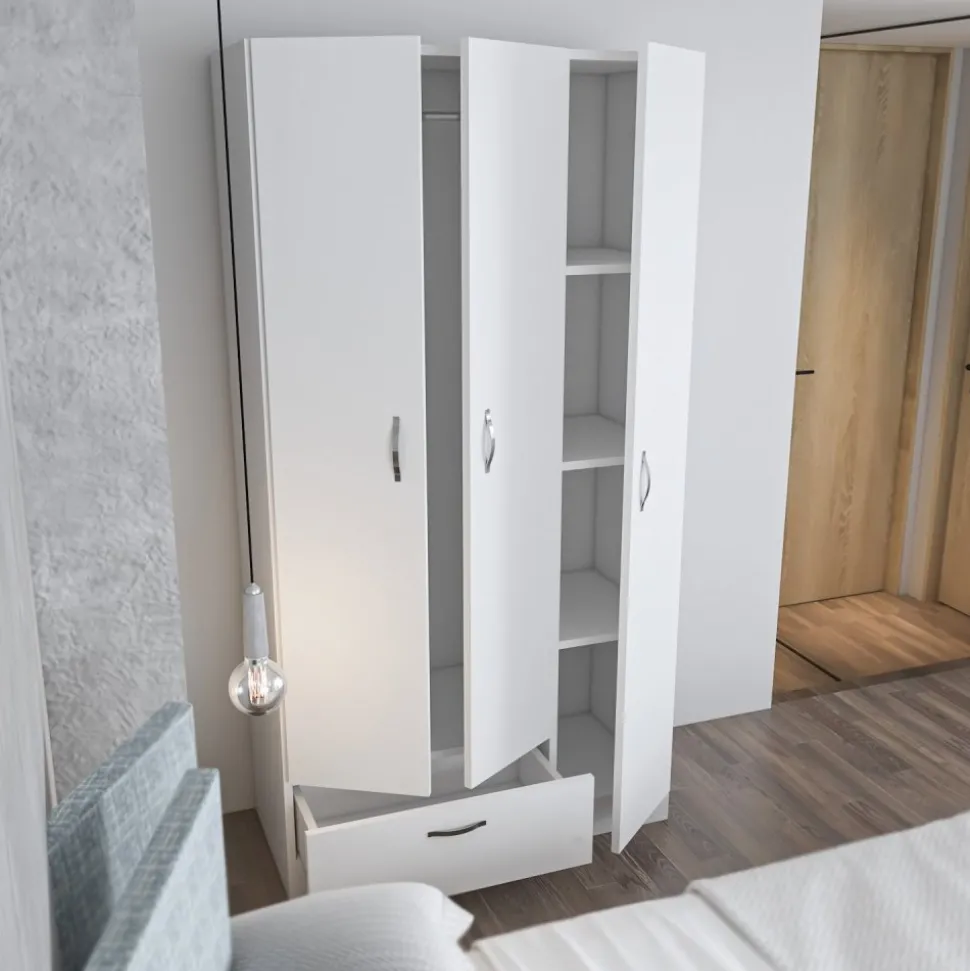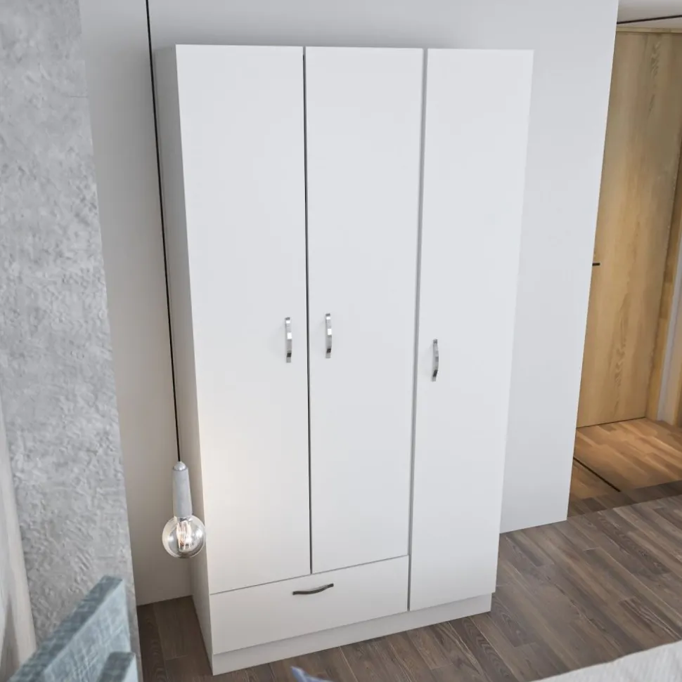 Garderob av spånskiva.