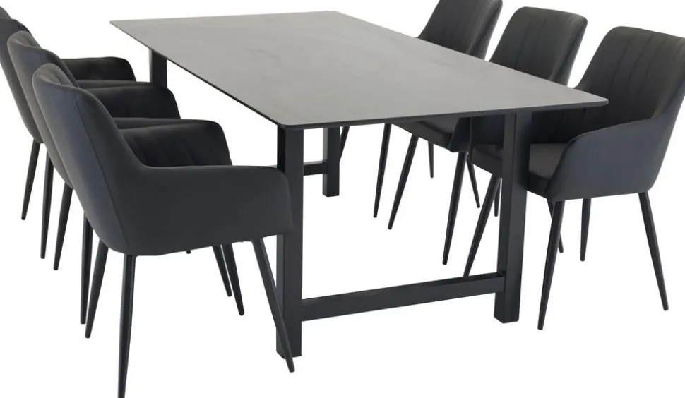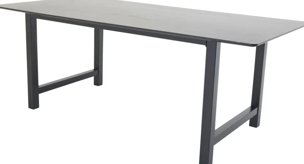 Stort i MDF med svart bordsskiva och underrede i metall.