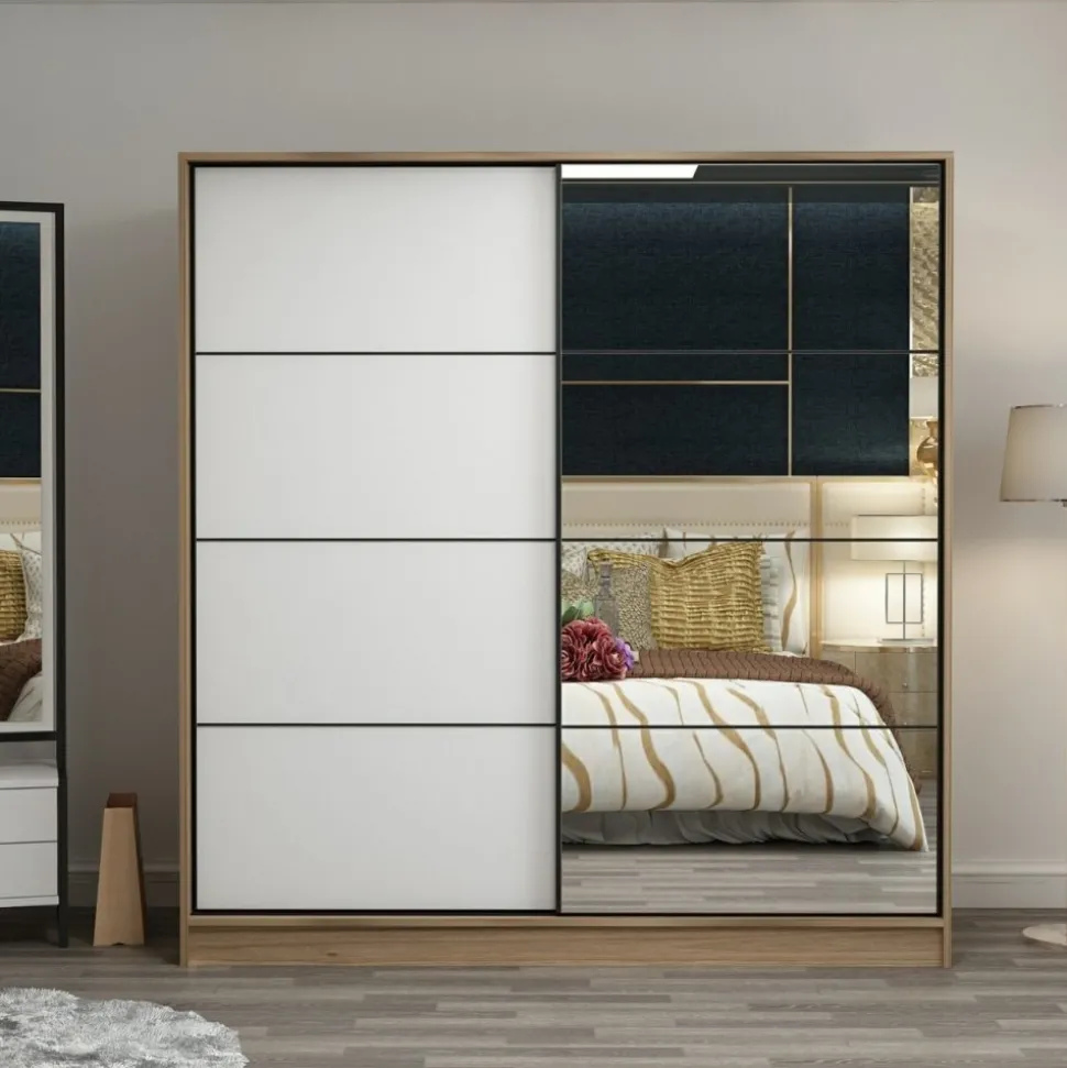 Garderob med spegeldörr, 220x52x210 cm - Brun/vit