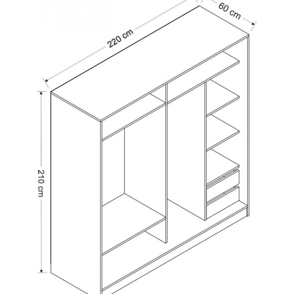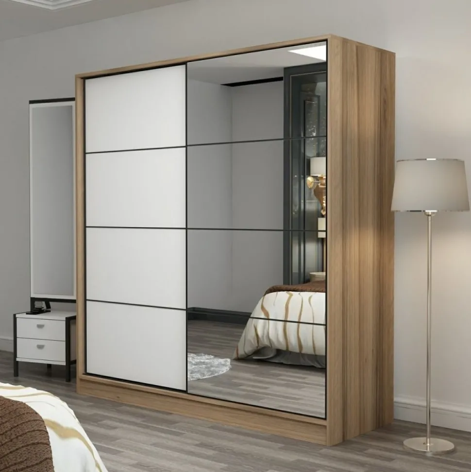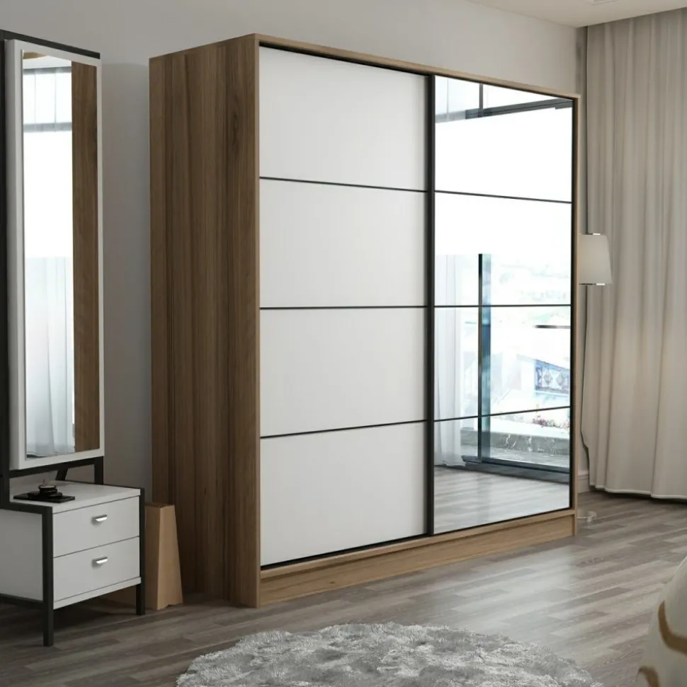 Garderob med spegeldörr, 220x52x210 cm – Brun/vit