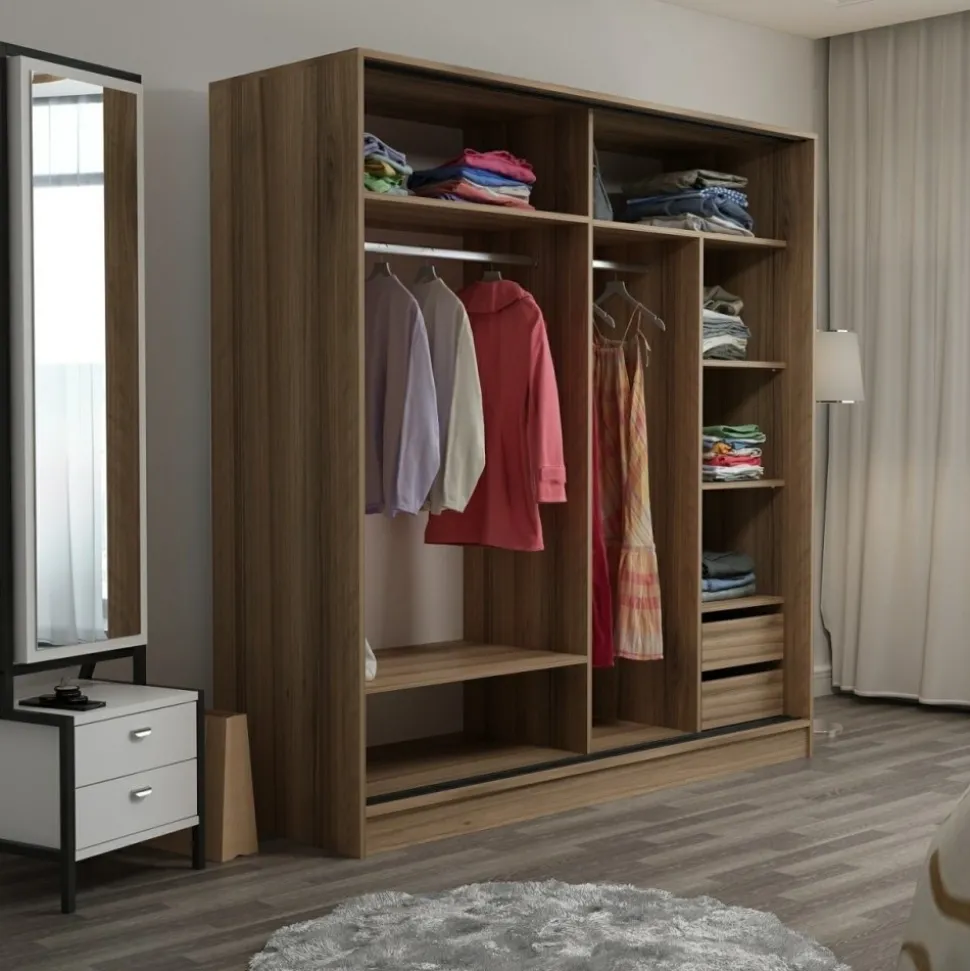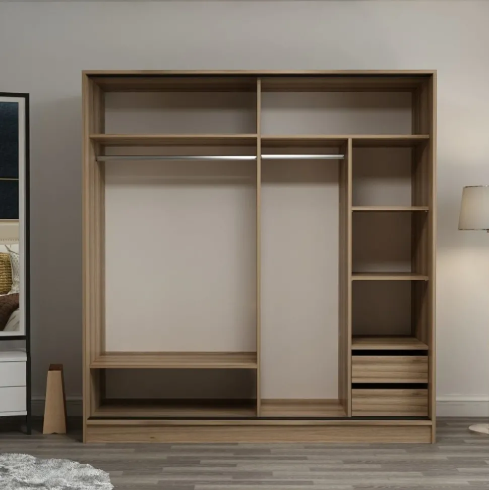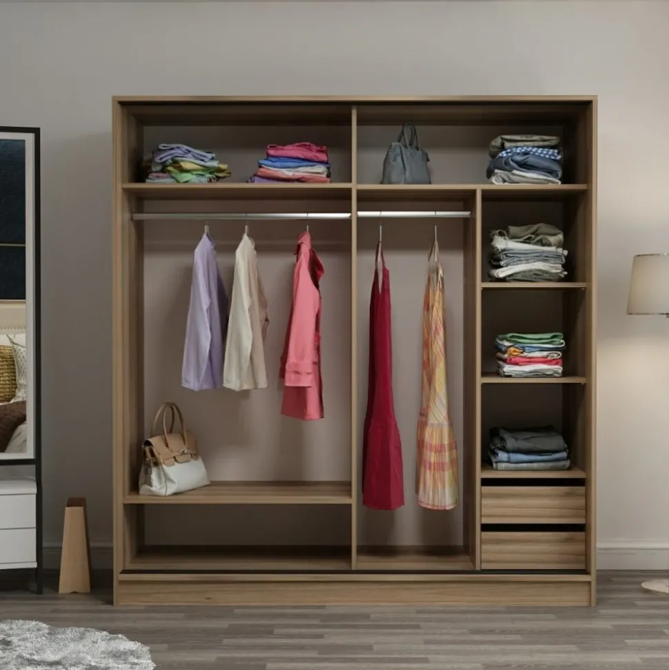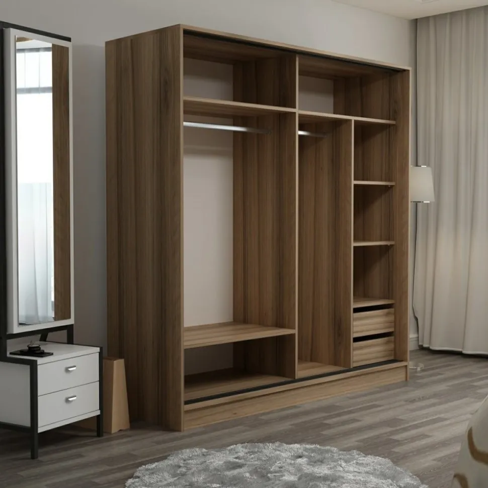 Garderob med spegeldörr, 220x52x210 cm – Brun/vit