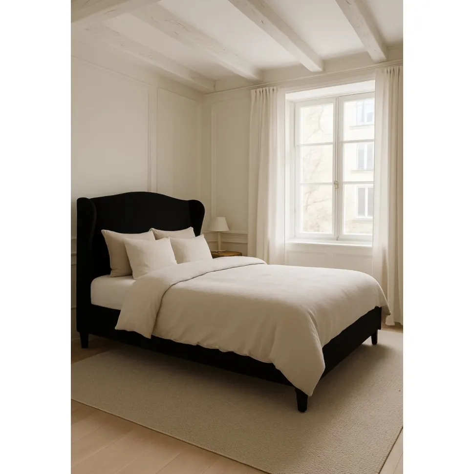 Skapa en elegant och inbjudande känsla i sovrummet med denna stilfulla . Den mjukt klädda ramen med klassiska vingdetaljer ger ett sofistikerat uttryck och passar lika bra i moderna som traditionella inredningar.