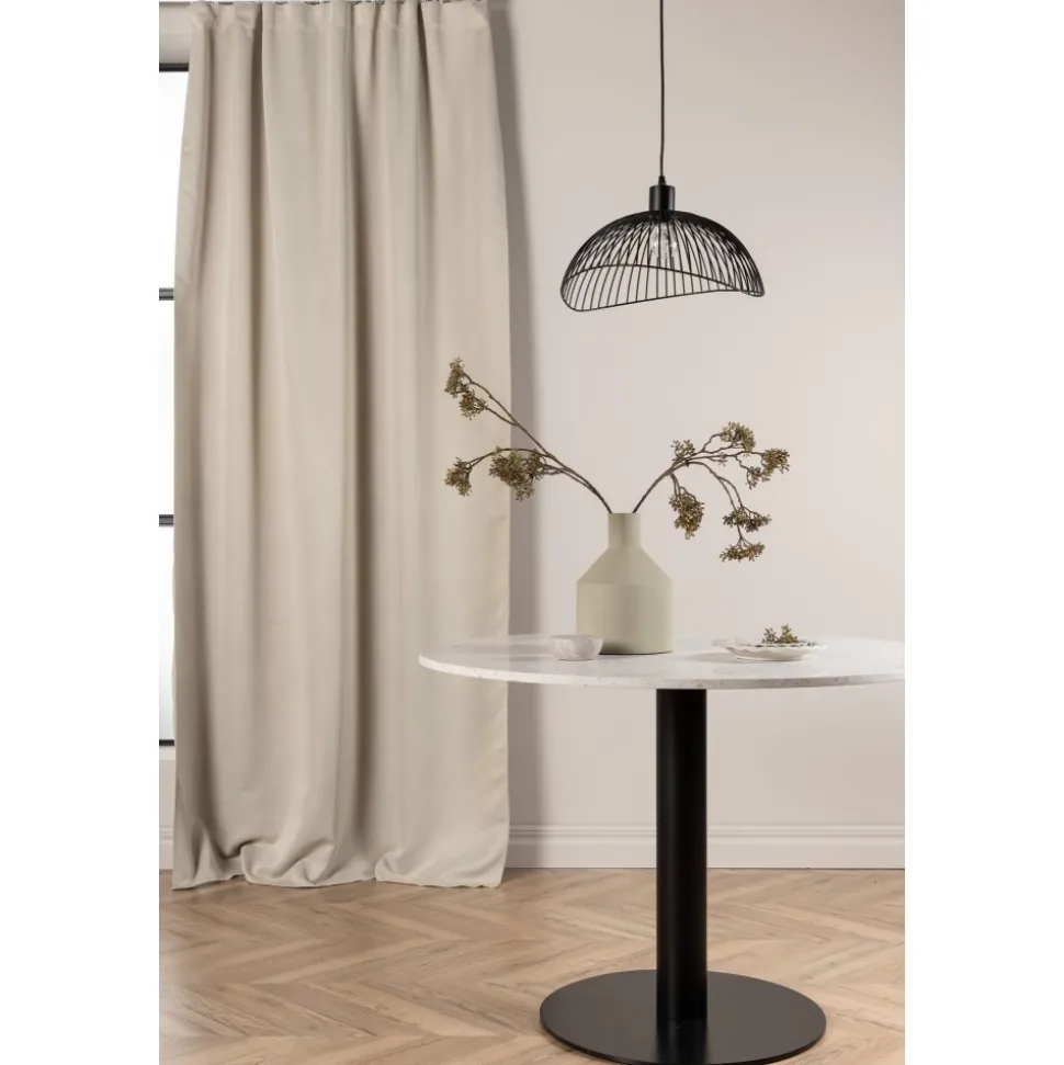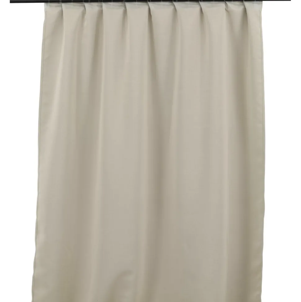 Mörkläggniningsgardin i slitstark polyester. Den jordnära kulören smälter på ett harmoniskt sätt ihop med övrig inredning och det rejäla tyget mörklägger starkt solljus och håller hemmet svalt och skönt. Gardinen har dolda hällor för upphängning.