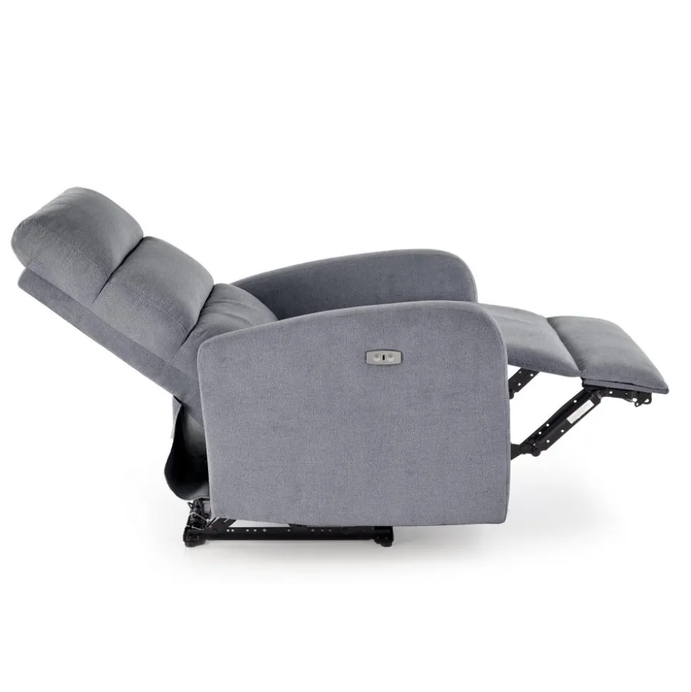 Skön med elmanövrerad justering av rygg och fotstöd. Fåtöljen har även inbyggd USB-kontakt.