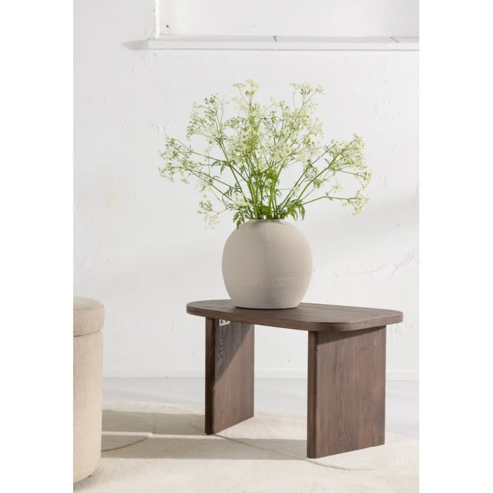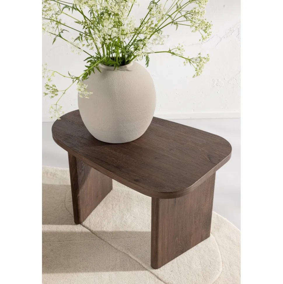 Grönvik är det perfekta sidobordet för att komplettera din inredning. Med sin vackra mocca färg och tillverkat av MDF-material är det en stilfull och funktionell möbel. Detta har en unik design som verkligen sticker ut. Dess kompakta mått på 45 x 70 x 40 cm gör att det inte tar upp mycket utrymme, samtidigt som det erbjuder gott om yta för att placera dina föremål och dekorera efter dina önskemål. Med sin skandinaviska design passar Grönvik in i olika inredningsstilar och ger en modern touch till ditt hem. Den eleganta och minimalistiska utformningen ger en stilren och fräsch känsla. Grönvik-sidobordet är inte bara snyggt att titta på, det är också praktiskt. Du kan enkelt placera din bok, kopp kaffe eller andra föremål på bordet och ha dem inom räckhåll. Lägg till Grönvik i ditt hem och njut av dess unika design och funktionella egenskaper varje dag. Detta sidobord kommer definitivt att bli en favorit i ditt hem och ge en extra touch av stil och elegans. Levereras omonterad.