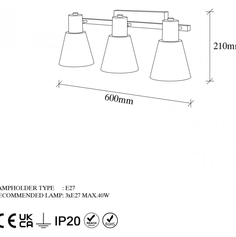 Vägglampa av metall och glas. Ljuskälla ingår ej.