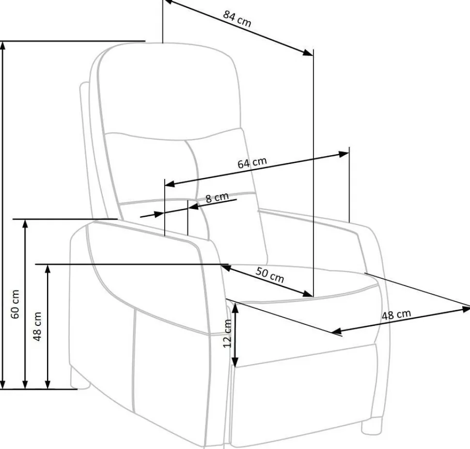 Reclinerfåtölj av polypropen med klädsel av sammetstyg.