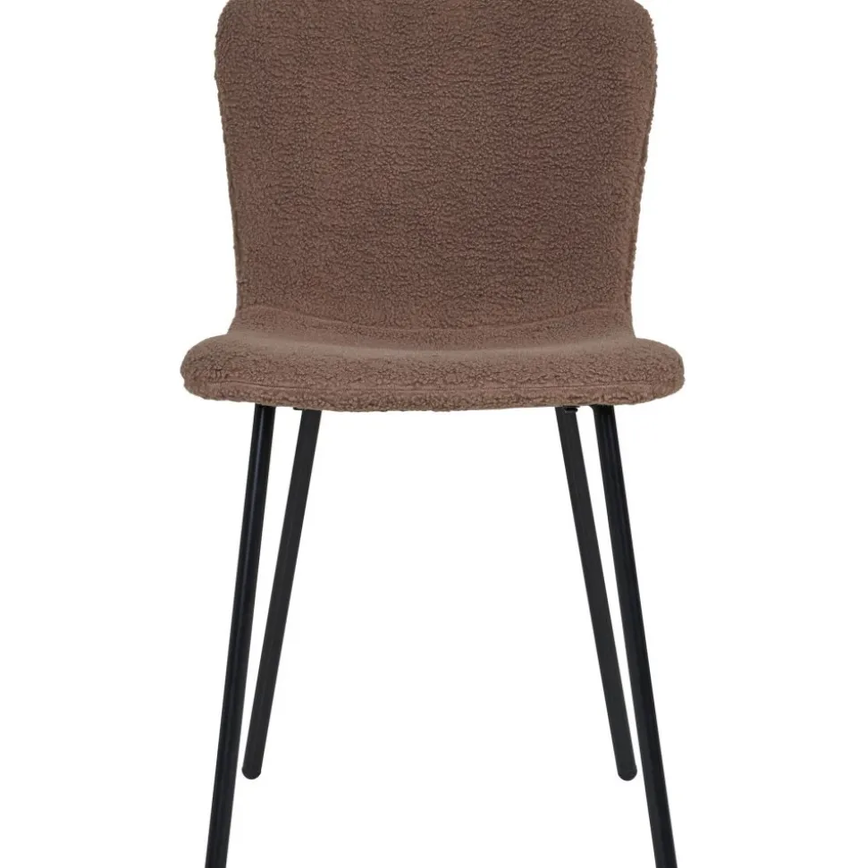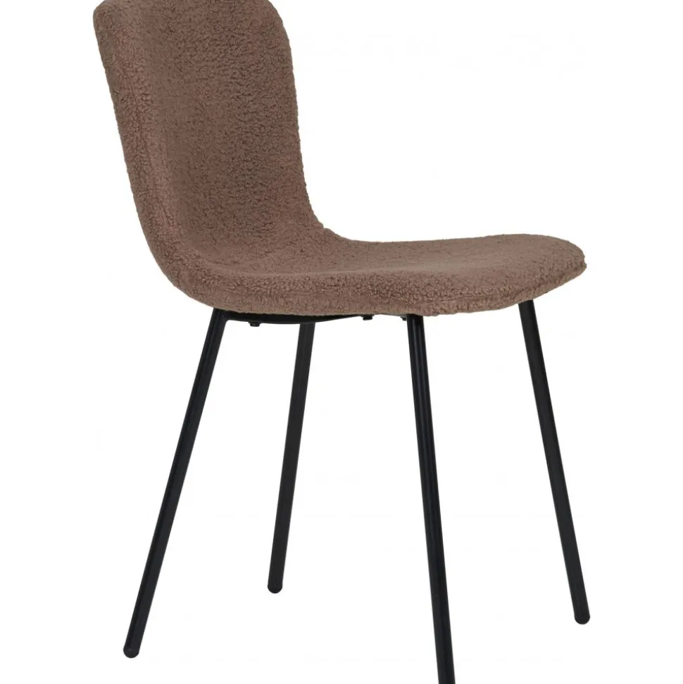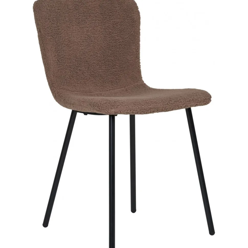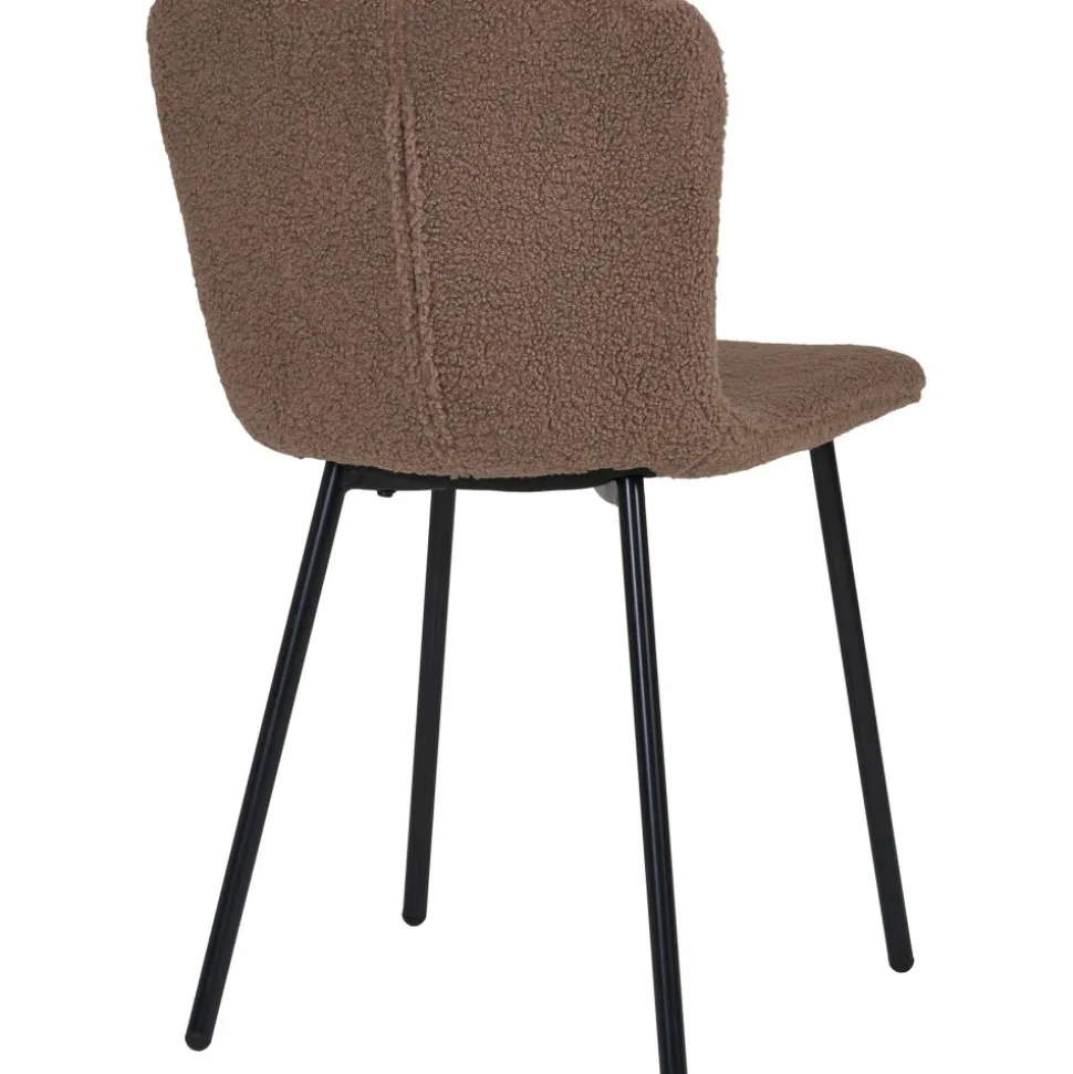 Matstol av plywood med klädsel av fuskpäls och underrede av stål. Levereras omonterad.
