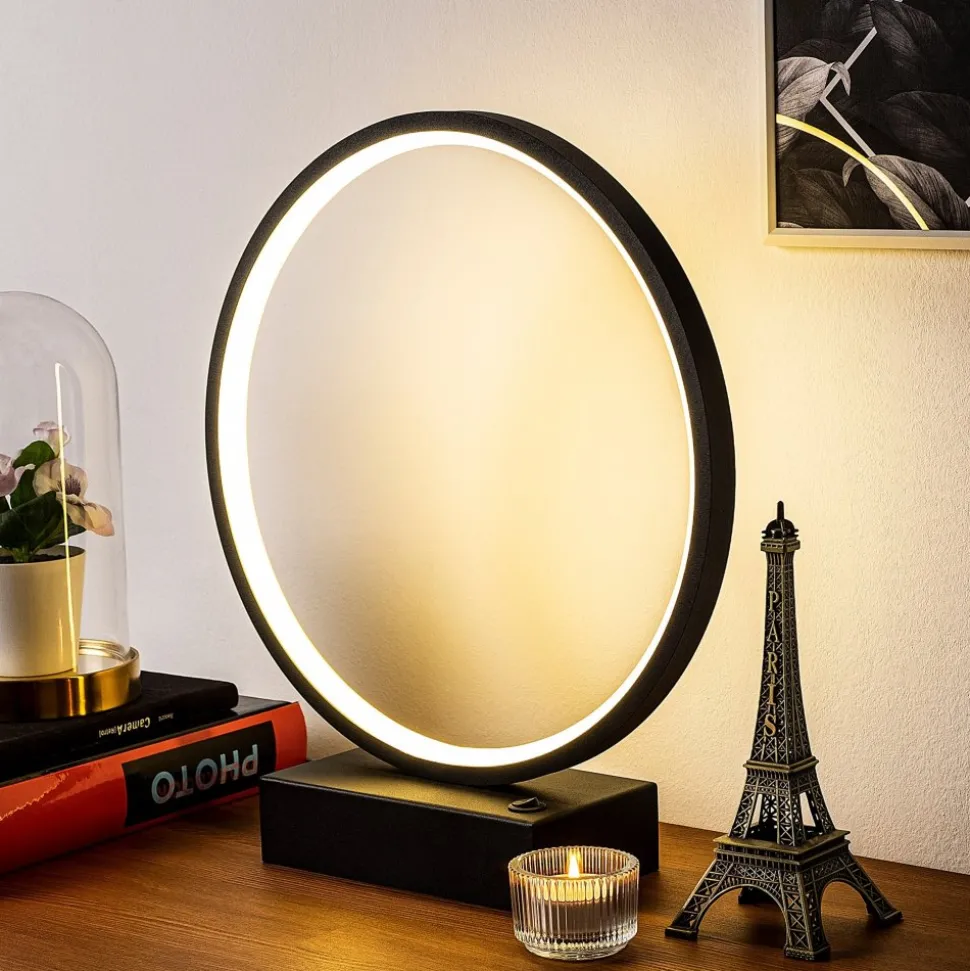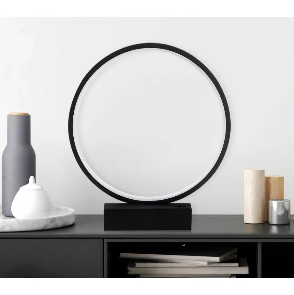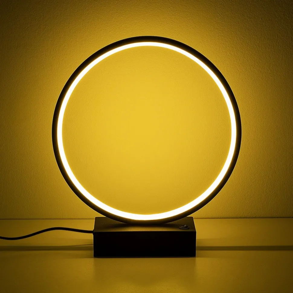 Bordslampa av metall. Ljuskälla är integrerad i lampan och går ej att byta.