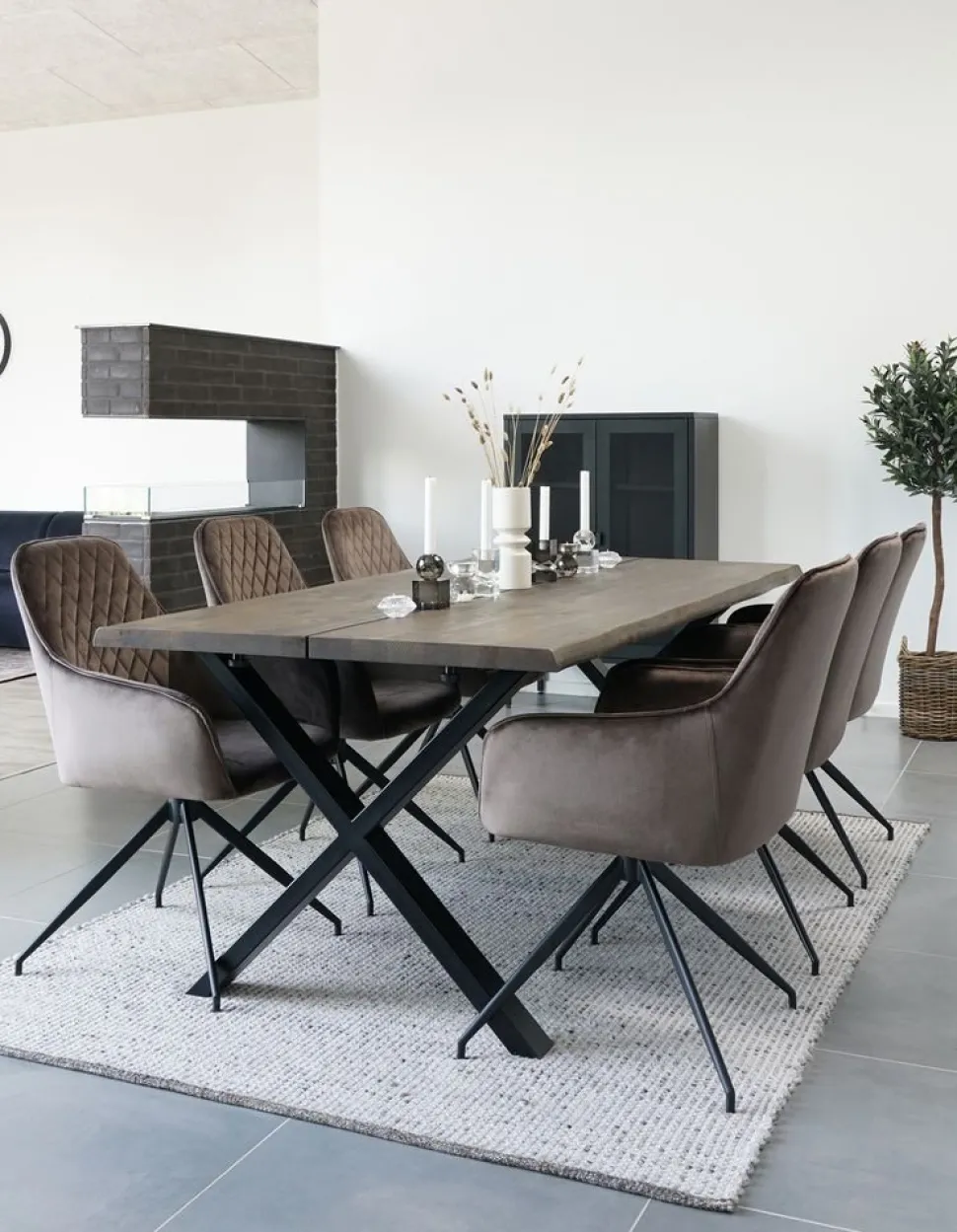 Stol i svampbrunt velour.