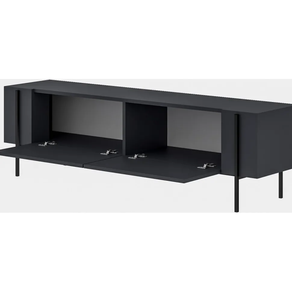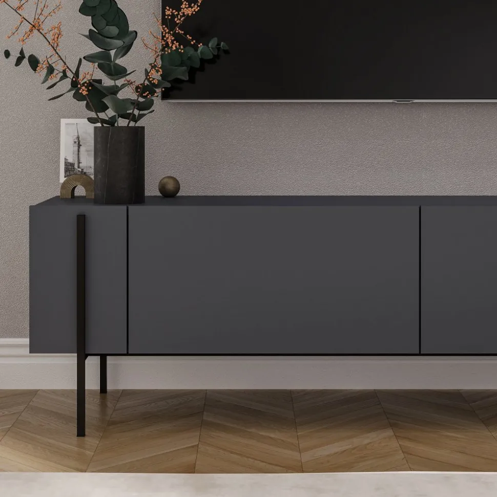 Förvandla ditt vardagsrum till ett elegant och organiserat utrymme med vårt snygga mediabänk. Mediabänken är tillverkat av melaminbelagd spånskiva och är inte bara hållbart utan ger också en elegant touch till din heminredning. Den antracitfärgade kulören ger en modern touch till alla rum, vilket gör det till det perfekta tillskottet till ditt underhållningsområde.