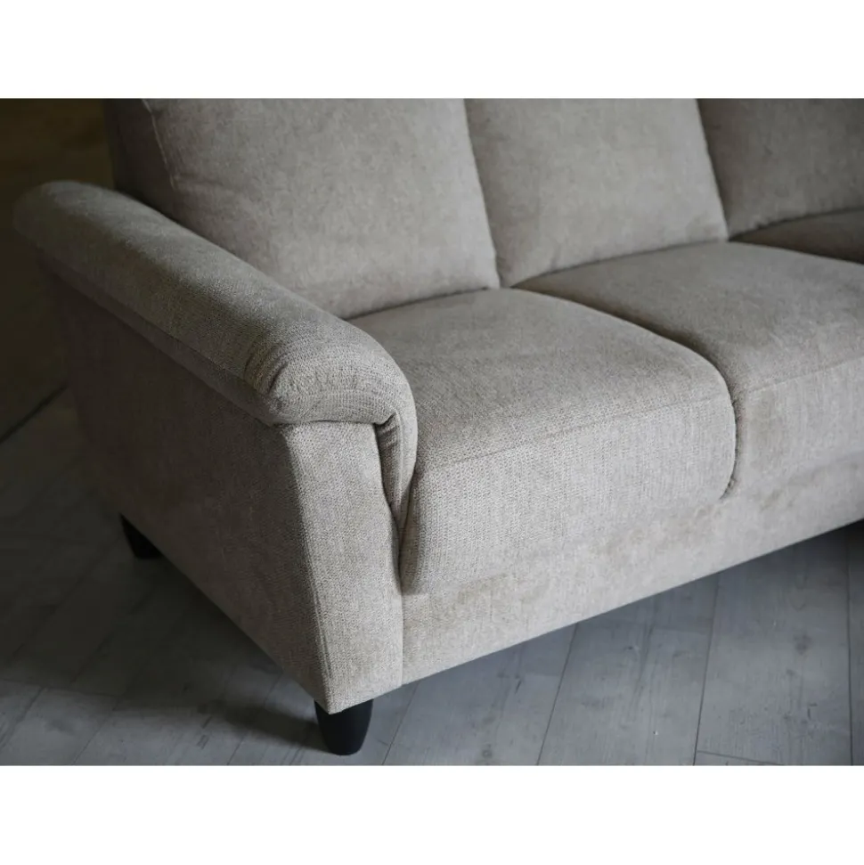 Denna 5-sits är en modern och rymlig möbel som kombinerar stilren design med funktionell komfort. Klädd i ett mjukt beige tyg som ger soffan ett ljust och harmoniskt intryck som passar perfekt i både stora och små vardagsrum. Den generösa hörnformen skapar en optimal lösning för umgänge och avkoppling med familj och gäster.