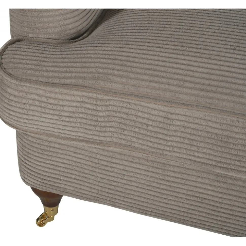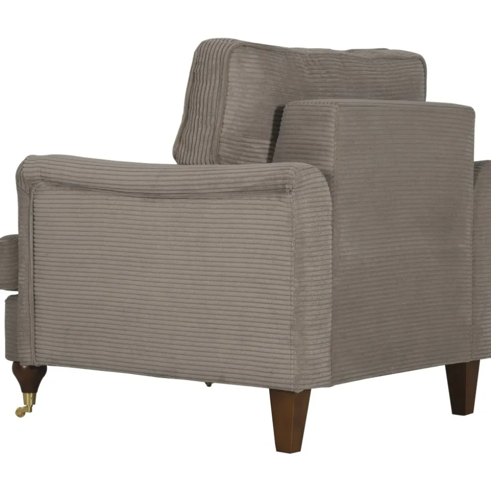 Alla våra Howardfåtöljer har en gedigen konstruktion för god kvalitet och mycket lång livslängd. Howard Watford har mässingsfärgade hjul på frambenen med tillhörande skyddande koppar. Klädseln är i manchestertyg och sitt- och ryggdynor är löstagbara.