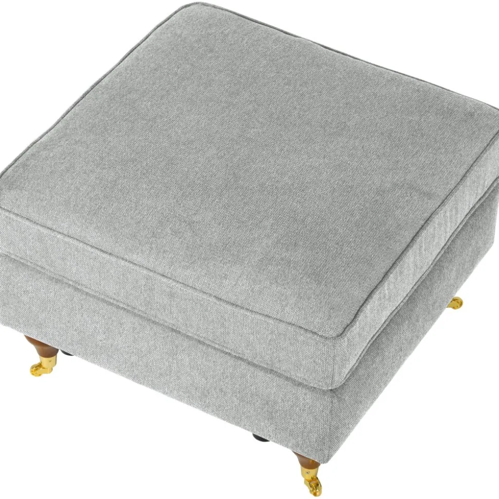 Fotpallen kommer här i en grå och stilren klädsel som passar in alla hem.