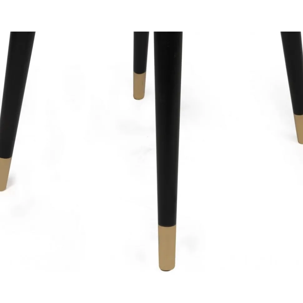 Matstol av metall med klädsel av sammet och ben av avenbok.