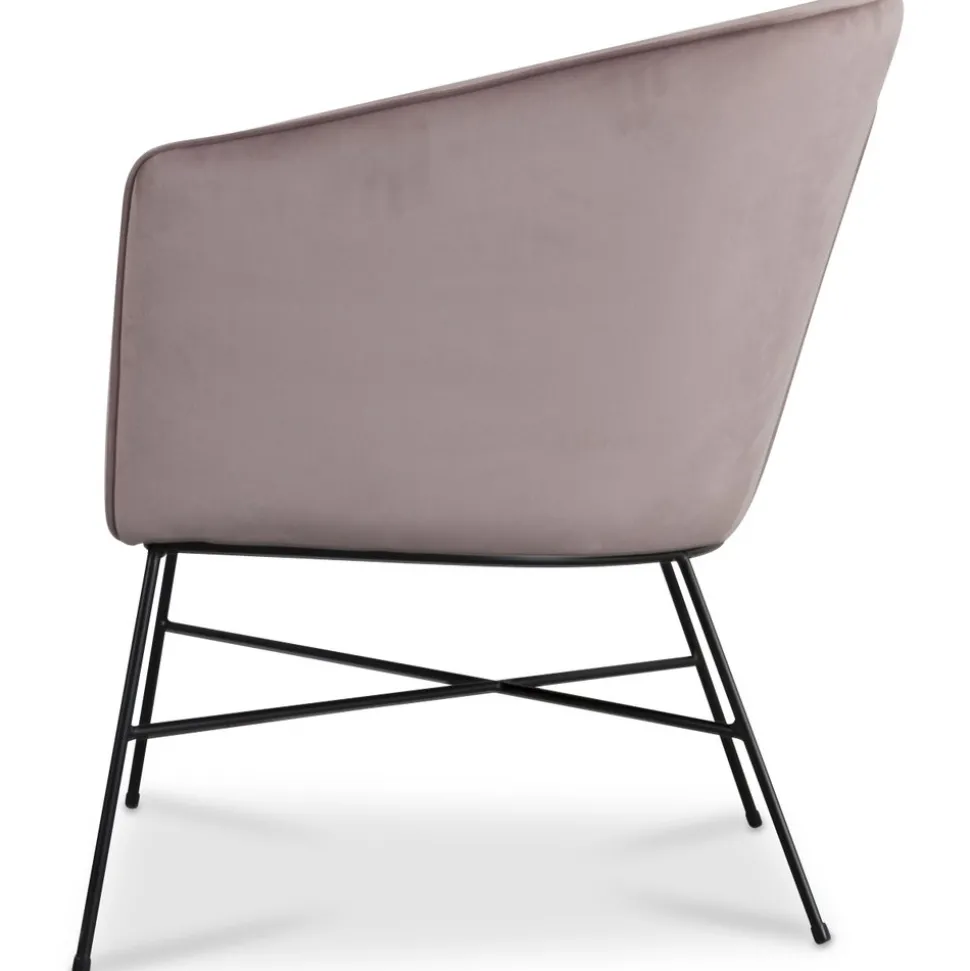 Fåtölj Isabelle har ett retroutseende, god sittkomfort och ett sammetstyg. Svart pulverlackat metallunderrede.
