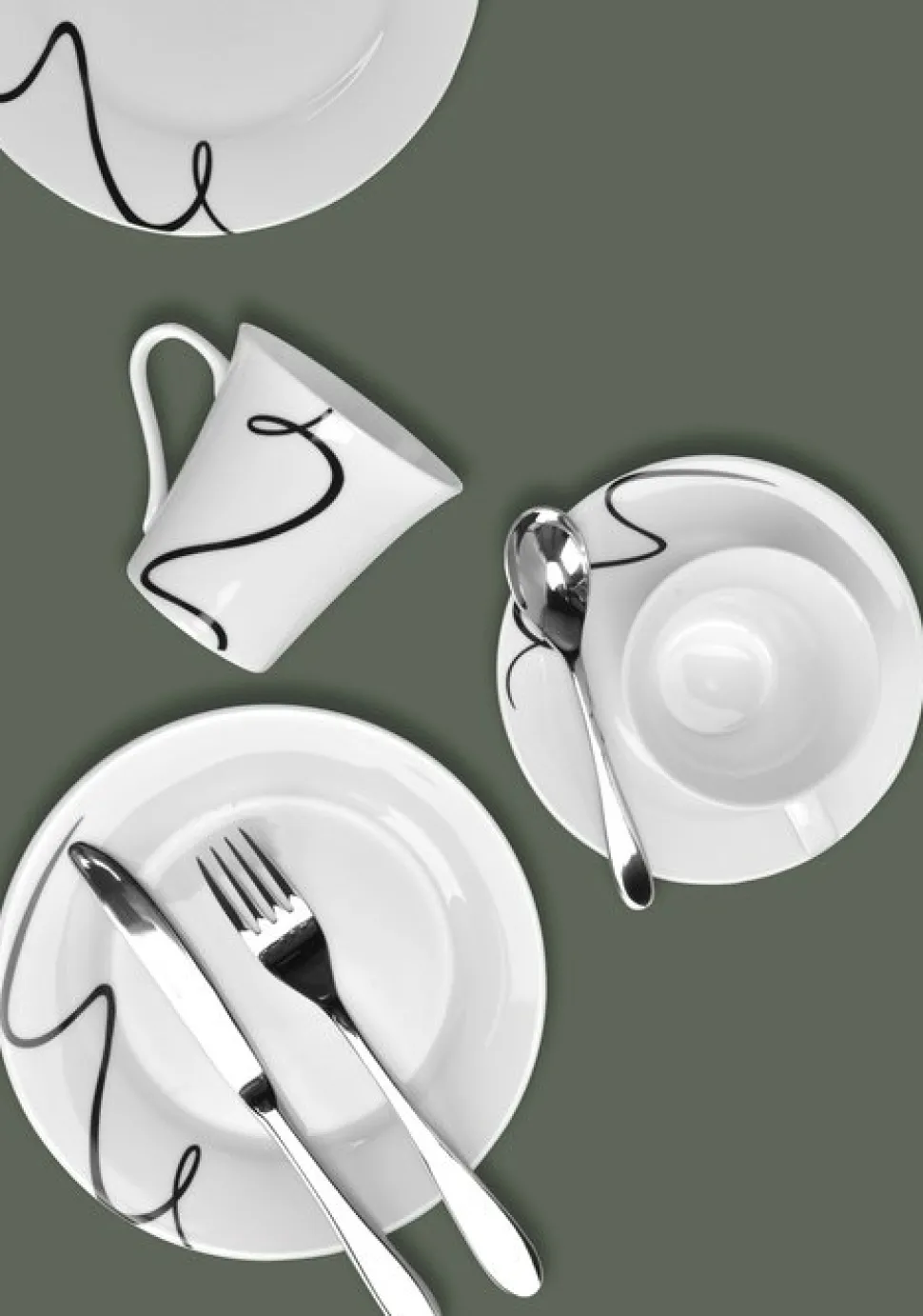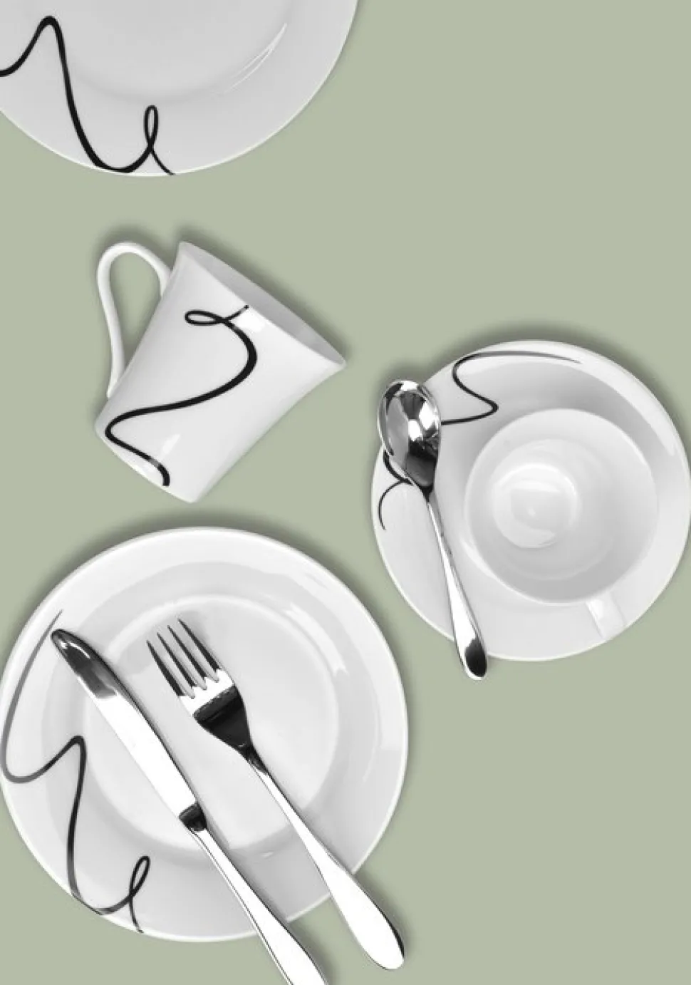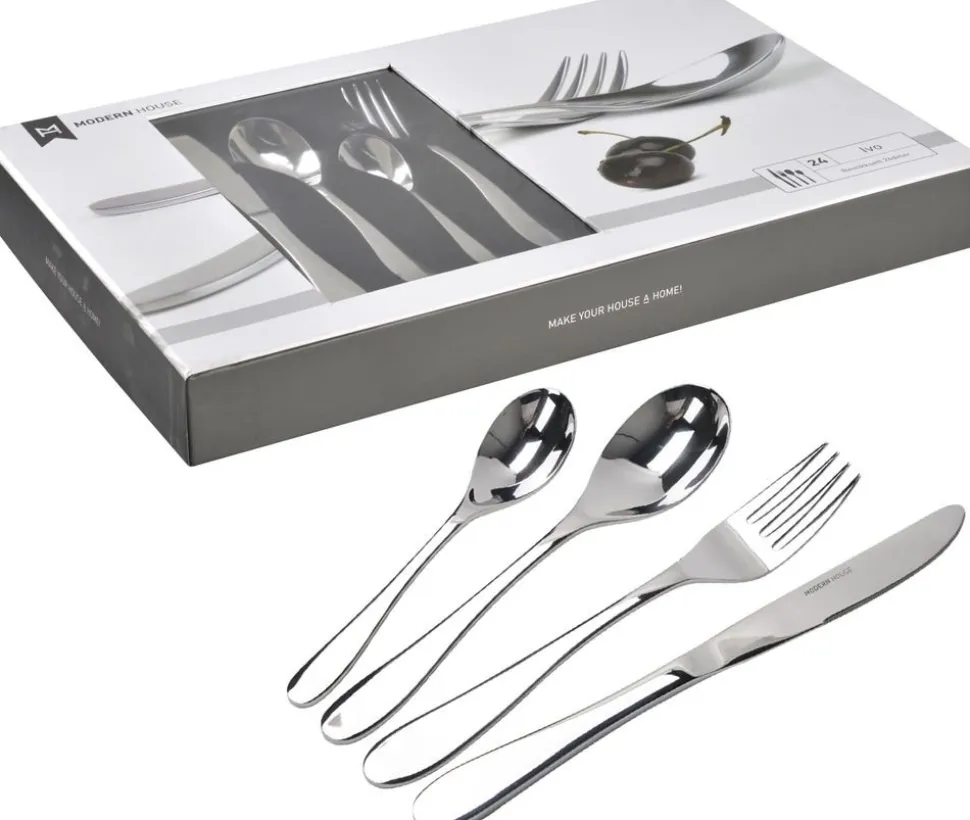 Ivo är ett i högpolerat rostfritt 18/0-stål innehållande sex knivar, sex gafflar, sex skedar och sex teskedar. Besticken kan smidigt tvättas i diskmaskin.