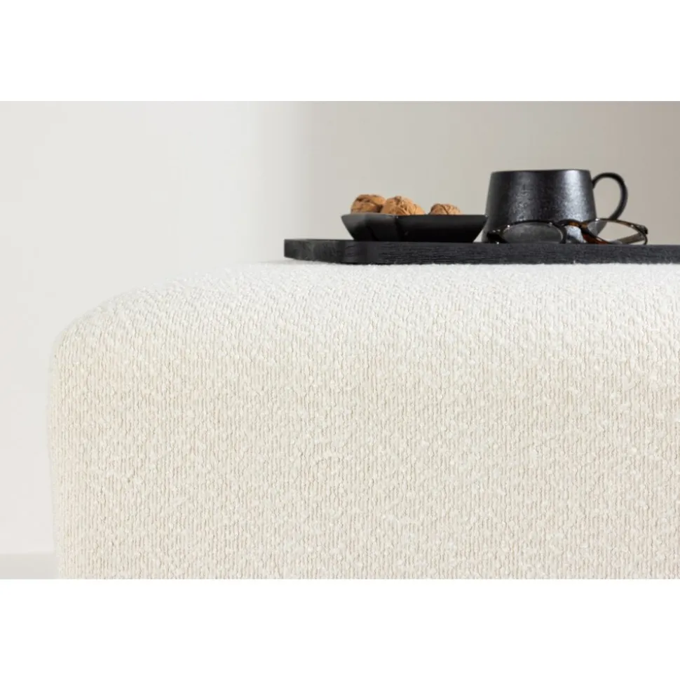 Ge ditt rum ett modernt lyft med vår rektangulära Ivy! Med sin trendiga och funktionella design i vitt bouclé-tyg är denna sittpuff det perfekta sättet att lyfta rummets utseende på ett modernt sätt. Den dekorativa träramen nertill i MDF ger inte bara stabilitet utan kompletterar också dess rektangulära form på ett stilfullt sätt. Använd den som en extra sittplats vid behov eller som en avkopplande fotpall för att komplettera din inredning med en touch av nutidens trender. Det rektangulära formatet gör den enkel att integrera i olika utrymmen, medan det vita bouclétyget ger en fräsch och modern känsla till rummet. Skapa en harmonisk miljö med denna praktiska och trendiga sittpuff som är både funktionell och stilfull.