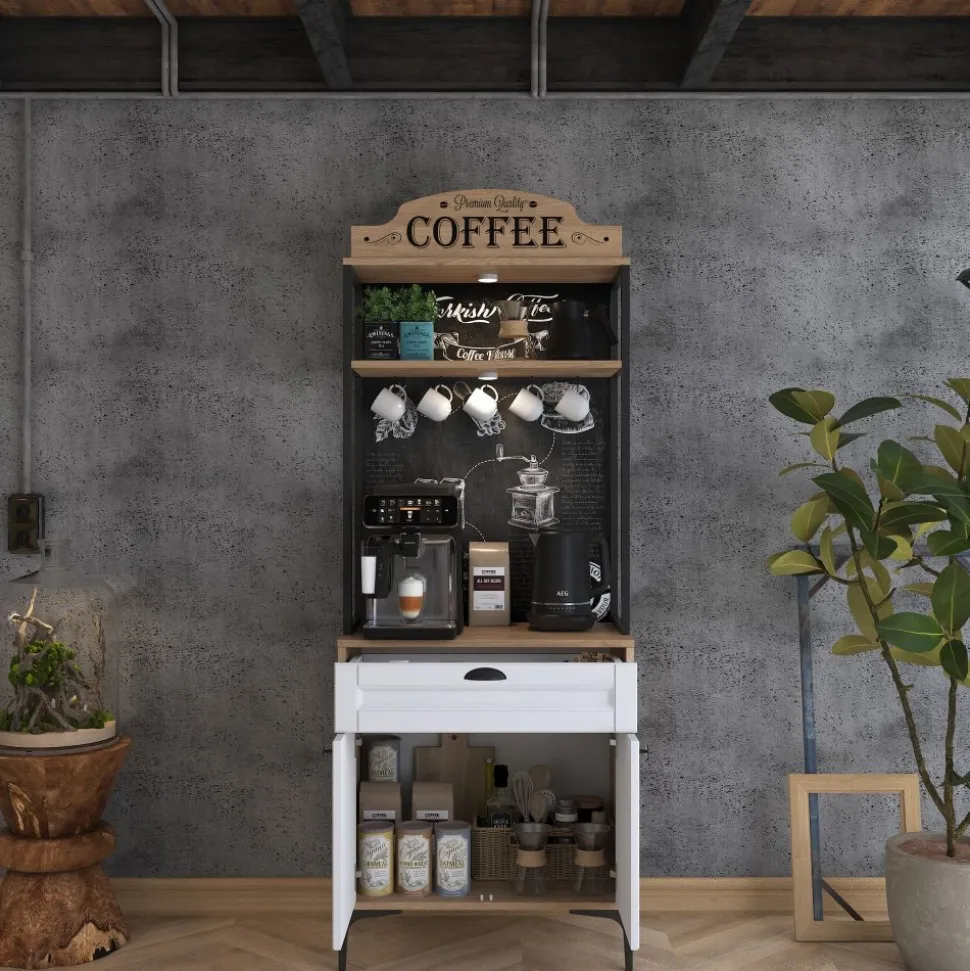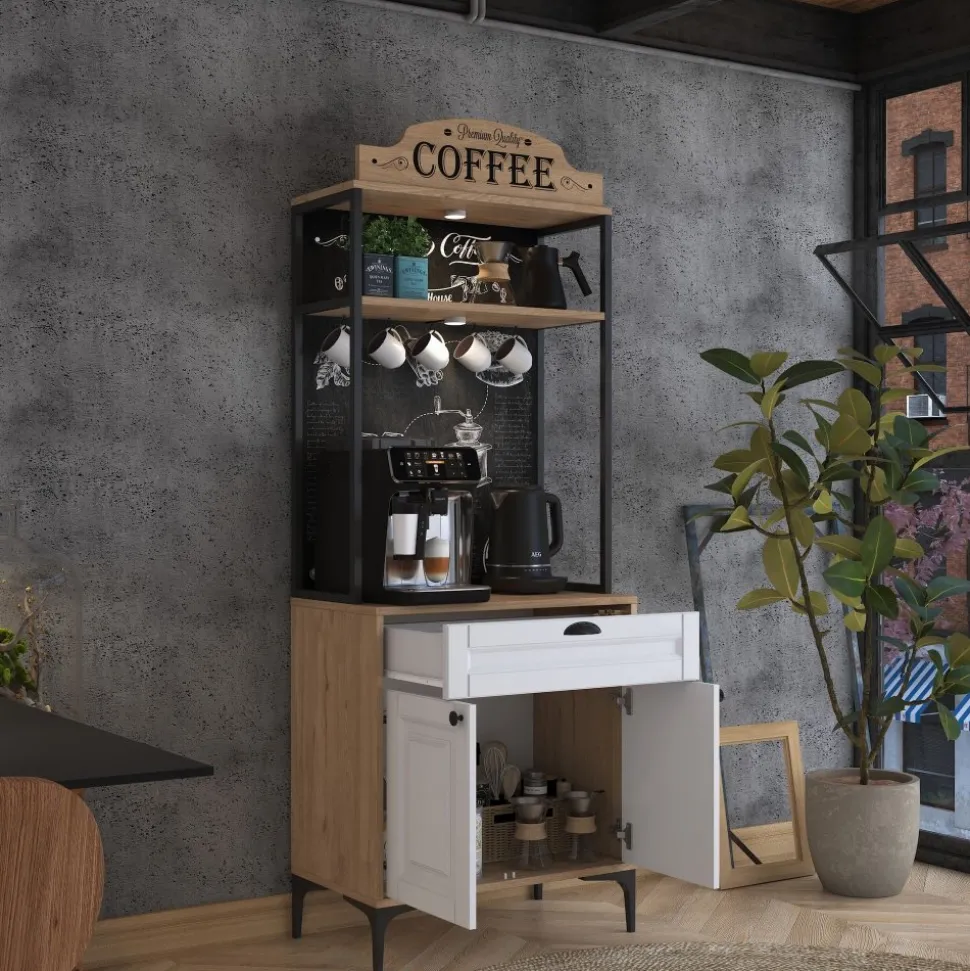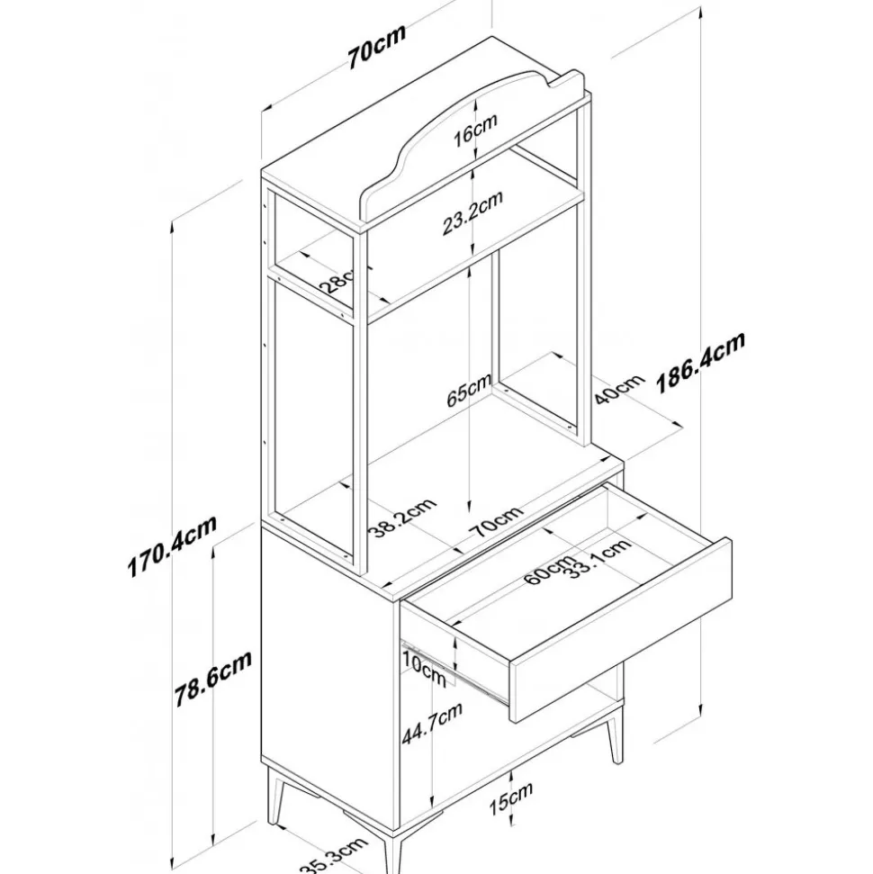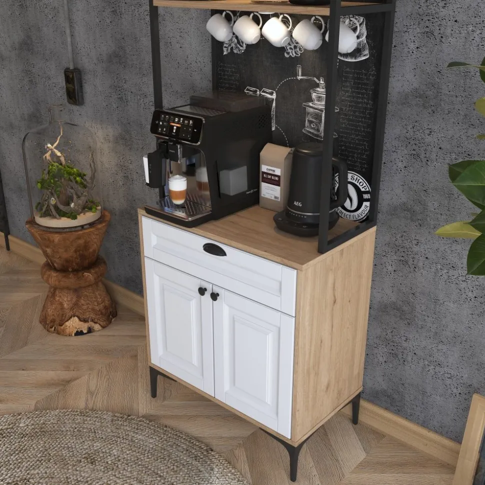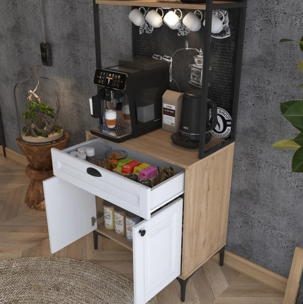 Med flera hyllor och en rymlig låda ger detta skåp gott om lagringsutrymme för alla dina ägodelar. Säg adjö till röriga bänkskivor och golv – allt kommer att få sin plats hos detta skåp.
