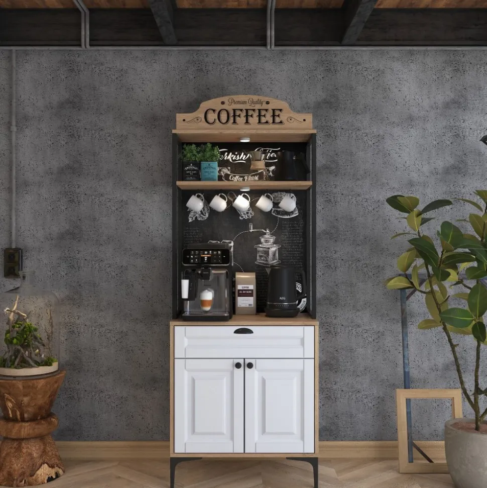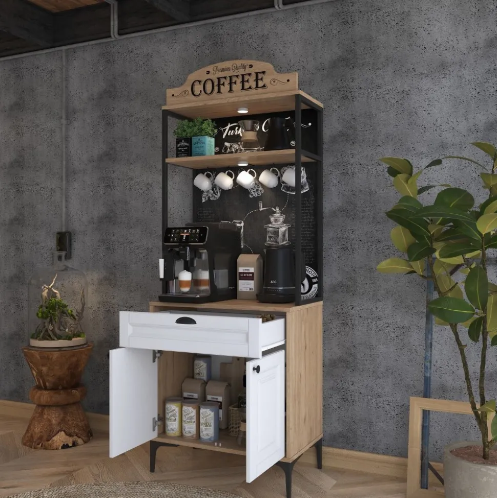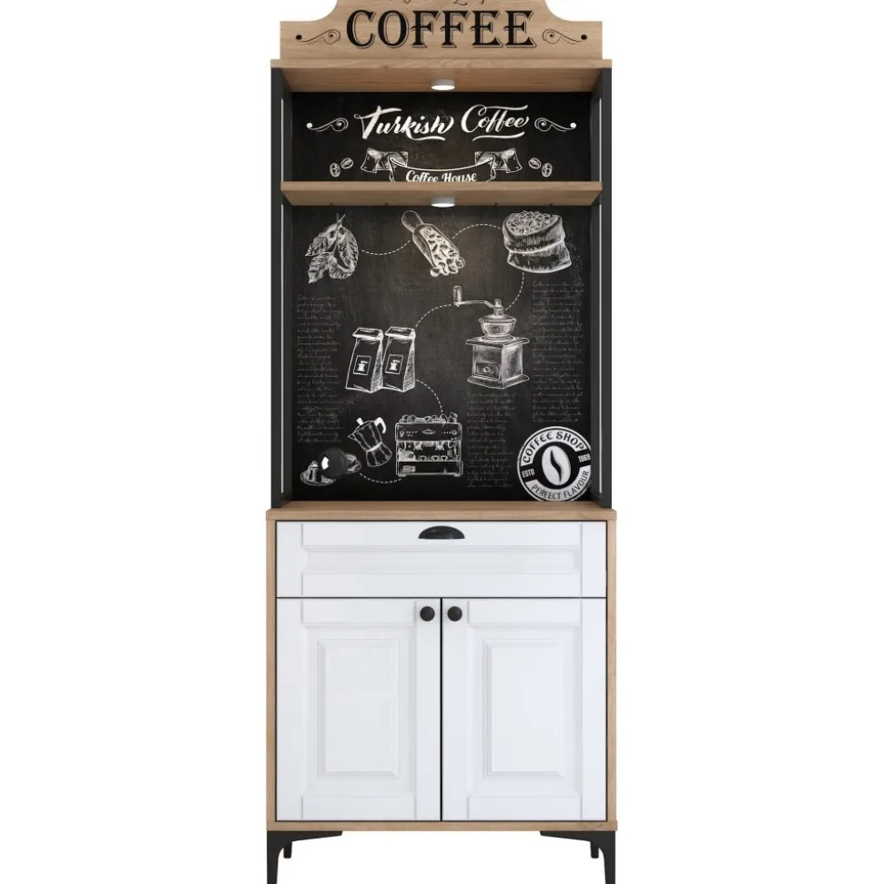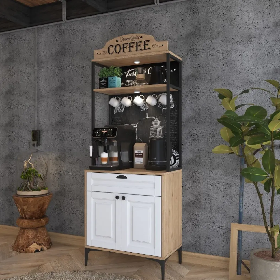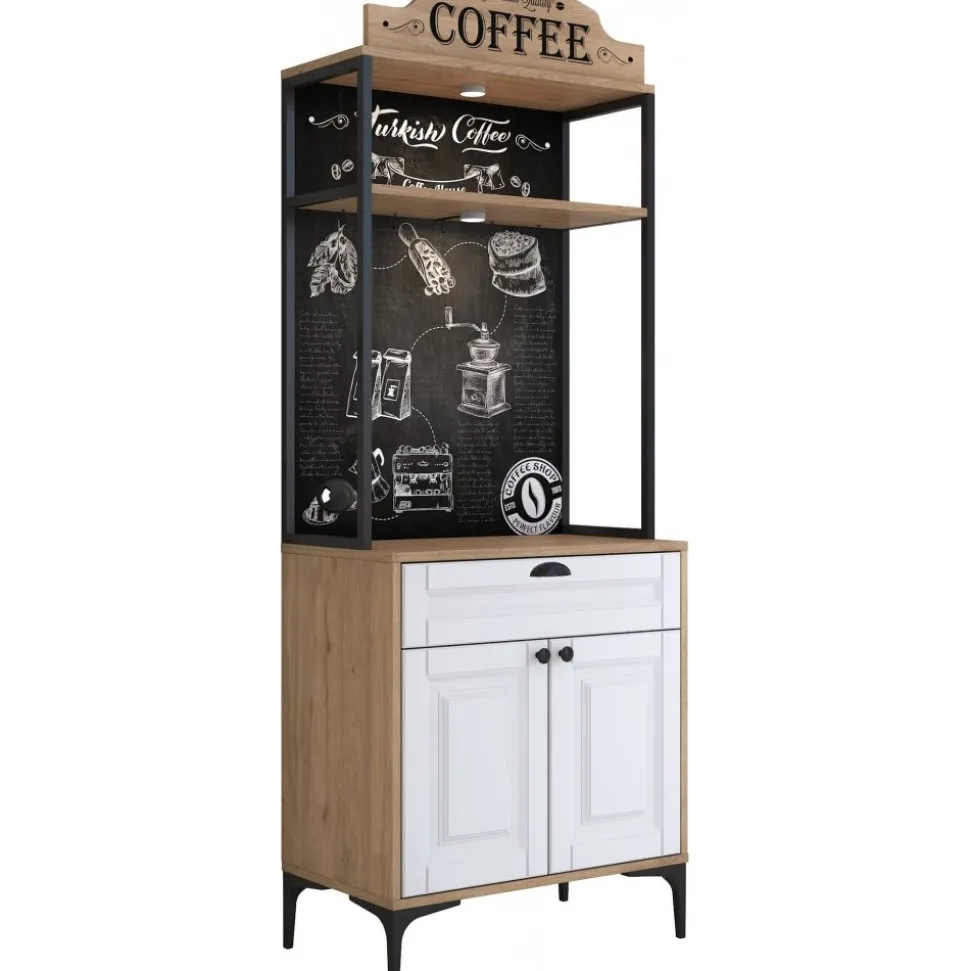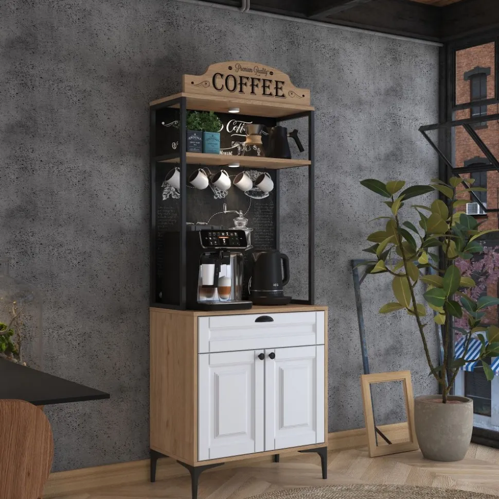 Med flera hyllor och en rymlig låda ger detta skåp gott om lagringsutrymme för alla dina ägodelar. Säg adjö till röriga bänkskivor och golv – allt kommer att få sin plats hos detta skåp.