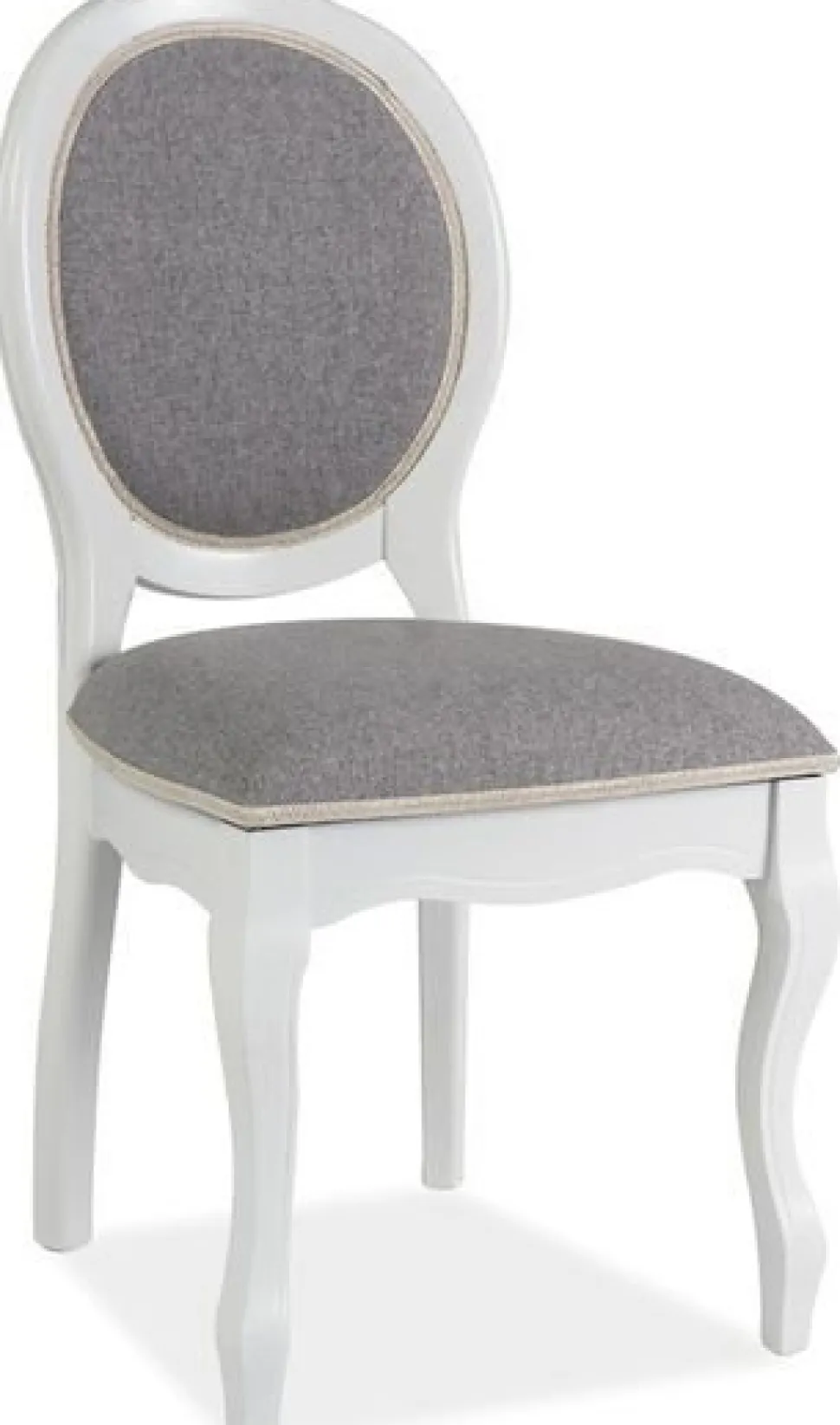 En fin med en klassisk design. Stommen är tillverkad av vitmålad trä och sitsen är klädd med ett mycket behagligt tyg för maximal komfort.