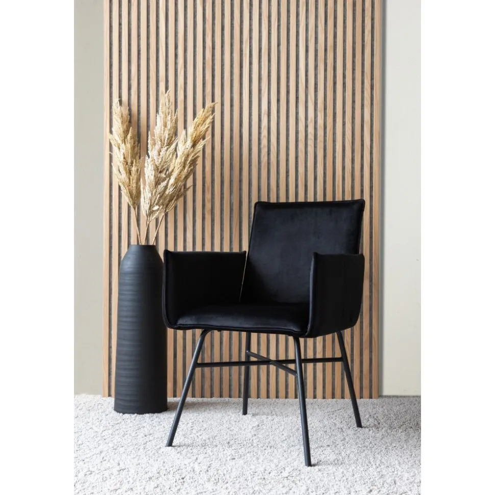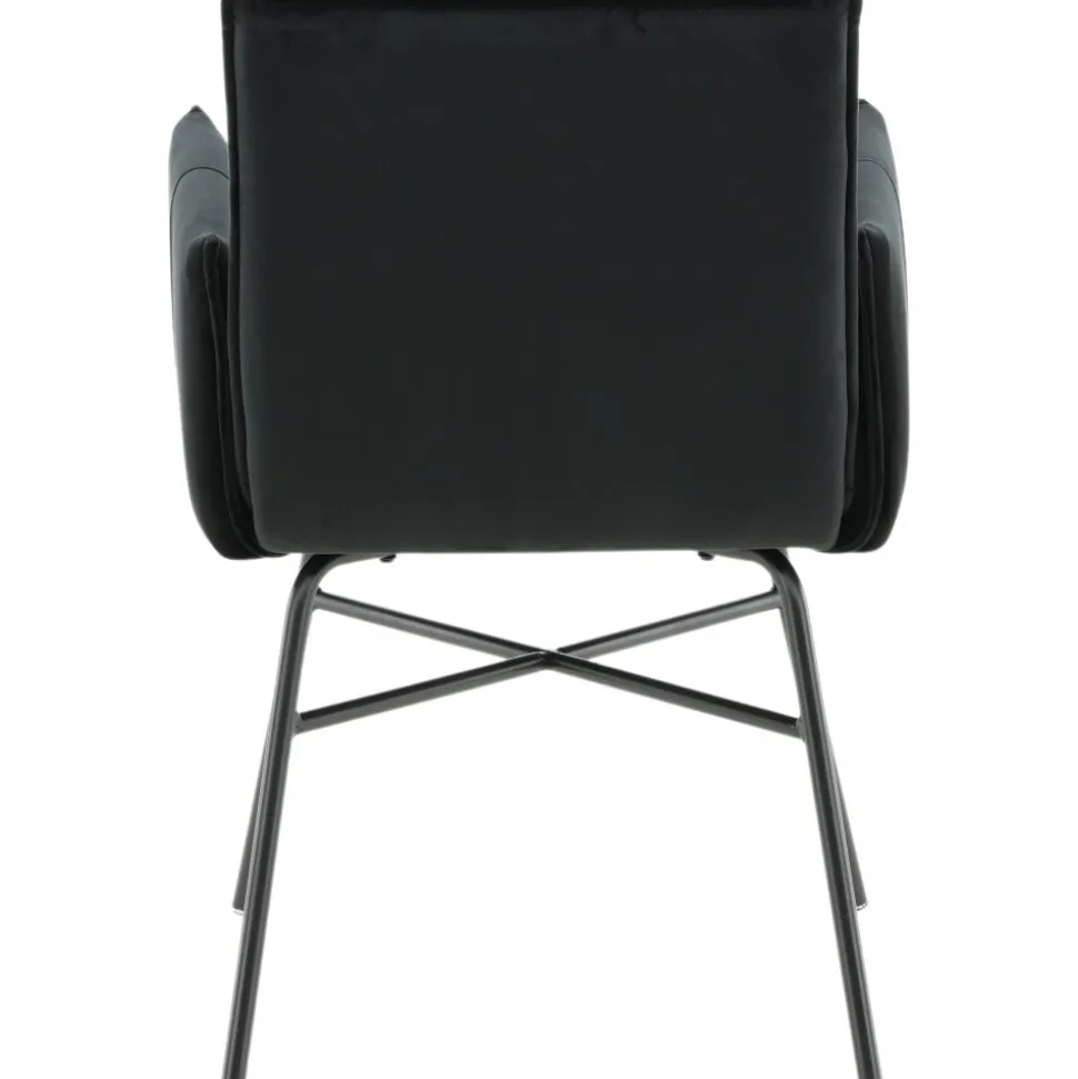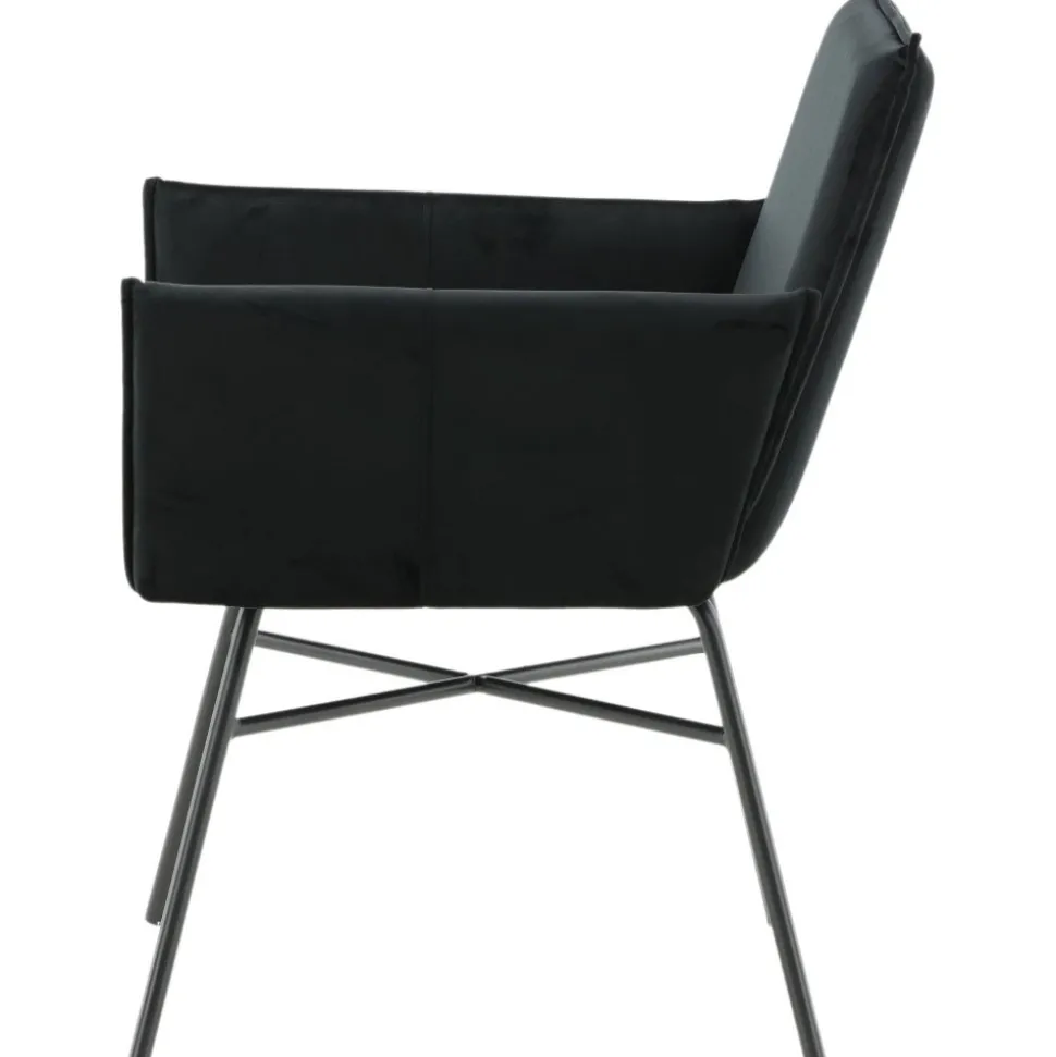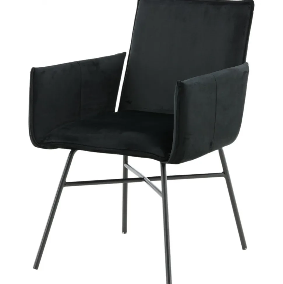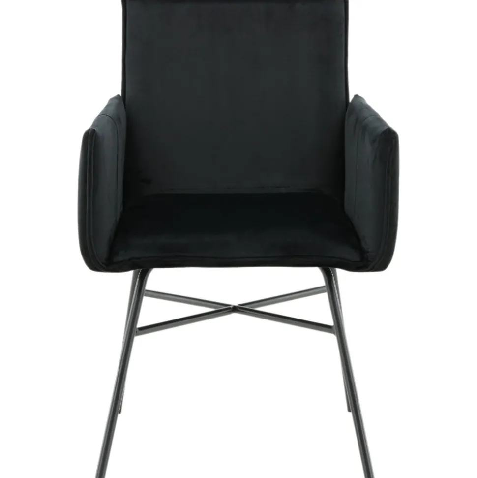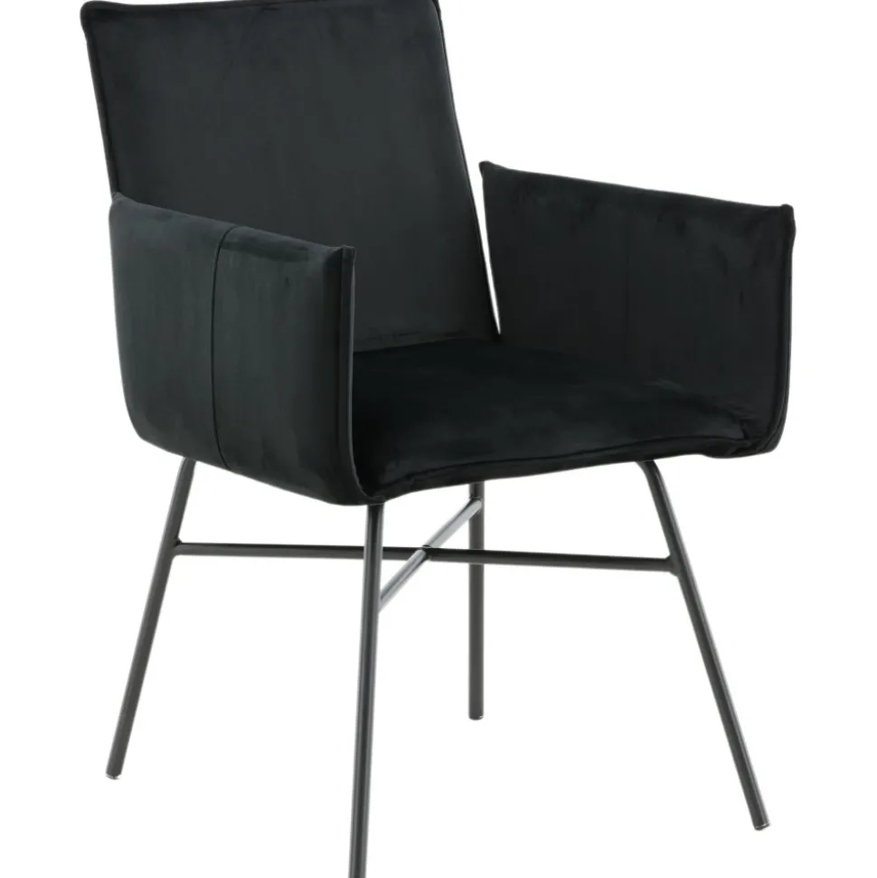 Karmstol av järn och plywood, klädd med polyesterlinne och sammet.